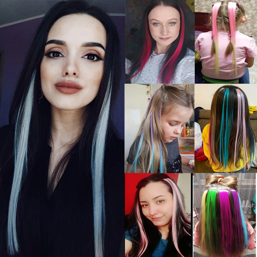 💖Особенности волос: яркий Синтетический зажим для наращивания волос, прямой зажим для наращивания волос, высокая температура, волоконная прическа, длинные прямые женские заколки для наращивания волос, шиньон, фиолетовый, розовый, красный, синий, розовый, разноцветный, мягкий, гладкий, натуральная и дышащая, термостойкая, для женщин, Повседневная посуда, свадьба, когда вам нужно