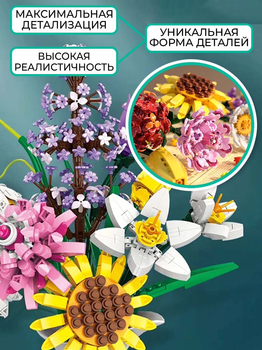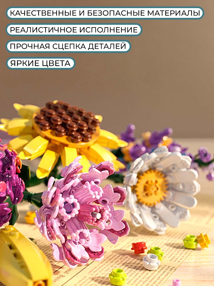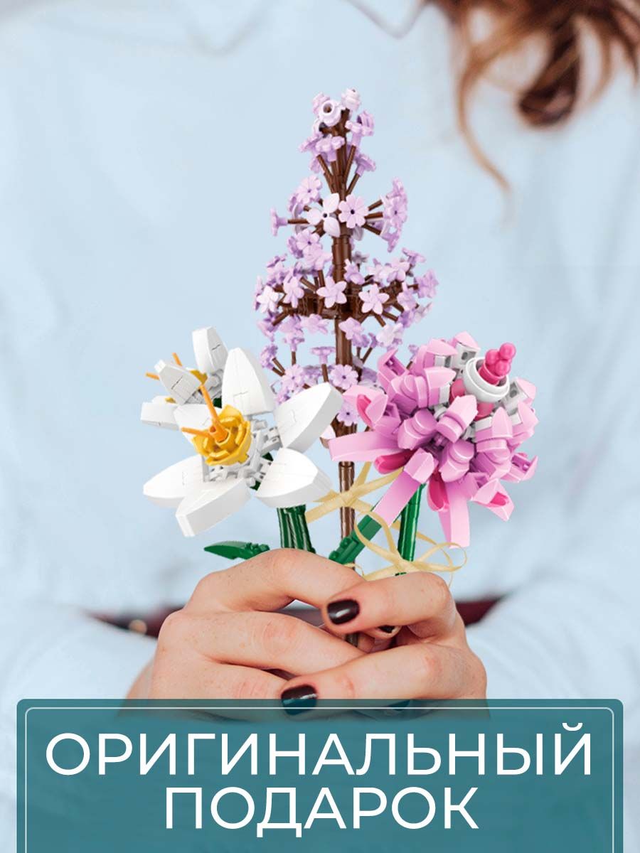 Описание: Цветочный конструктор WiMi, букет цветов из 829 миниблоков для девочек, 3д модель для интерьера, головоломка для детей и взрослых, игровой наборКонструктор классический 3D букет цветов - новый тренд в конструировании. Конструктор состоит из множества небольших блоков, которые соединятся друг с другом. Собирать цветы из конструктора можно в течение многих часов, ведь он похож на настоящую головоломку, а подробная инструкция в картинках поможет справиться с трудностями, которые могут возникнуть во время сборки. В набор входит множество различных видов цветов, декоративных колосков и листьев: розы, ромашки, маки, астры, маргаритки и другие растения. Красивый, пышный, удивительно вдохновляющий конструктор Букет цветов способен разбудить творческий потенциал и стимулировать фантазию. После сборки готовая модель - это целое произведение искусства, высокая детализация достигается за счет мини блоков. Эта композиция обязательно станет украшением Вашего интерьера. А едва собрав одну модель, сразу начинаешь выбирать следующую. Развивающий набор для детей станет прекрасным подарком как для маленьких ребят так и для взрослых. Это не обычная игра, а еще и возможность развивать логику, усидчивость, внимательность, образное и критическое мышление. И не стоит забывать, что даже маленькие принцессы любят цветы, а такой букет никогда не завянет. Он будет радовать хозяйку очень долго и напоминать о приятных моментах. Набор выполнен в ярких цветах, которые привлекают внимание, но не вызывают раздражение. Детали приятные на ощупь, их легко совмещать между собой. Подарочный набор для ребенка упакован в красочную картонную коробку, поэтому послужит отличным сюрпризом на любой праздник. Заходите в наш каталог WiMi, чтобы ознакомиться со всем ассортиментом конструкторов, а также не забывайте делиться Вашими отзывами.Вам также понравится!В каталоге нашего бренда WiMi Вы найдете ещё больше интересных товаров!740030151523879541557971611317433381324217698555044795315265256564542713495825884555759582313516041615051259