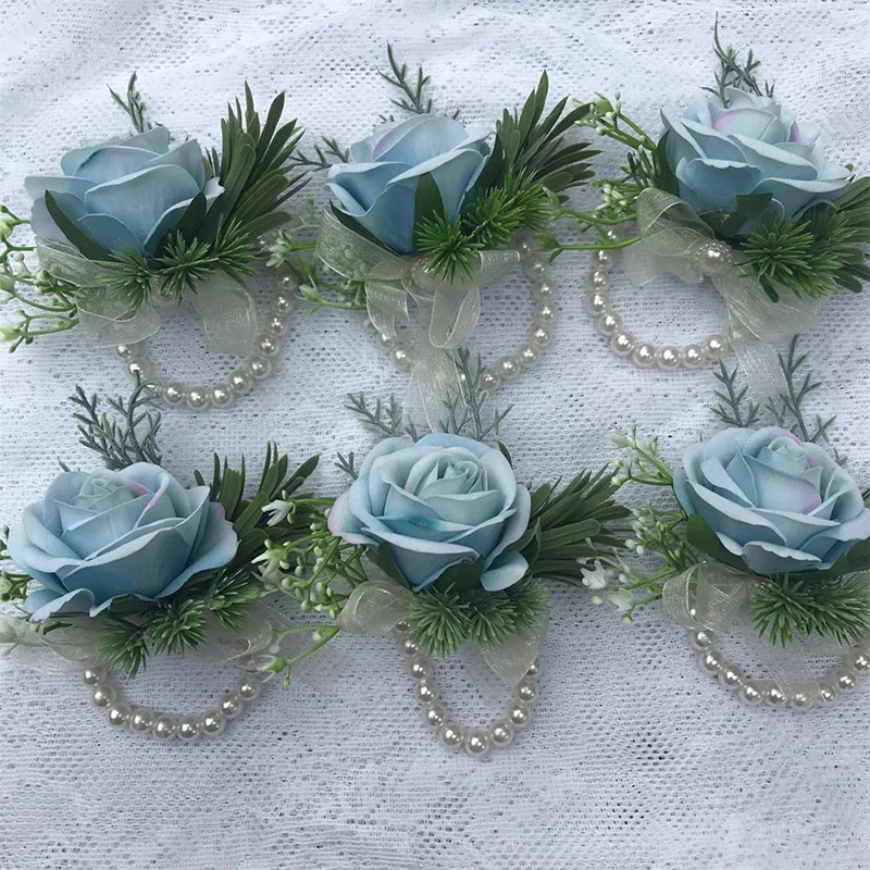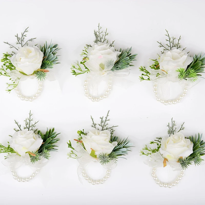 Цветы на запястье для девушек, подружек невесты, свадебная бутоньерка для выпускного, Шелковая Роза, жемчужный браслет, тканевый браслет, подарки, цветы на запястье, корсаж