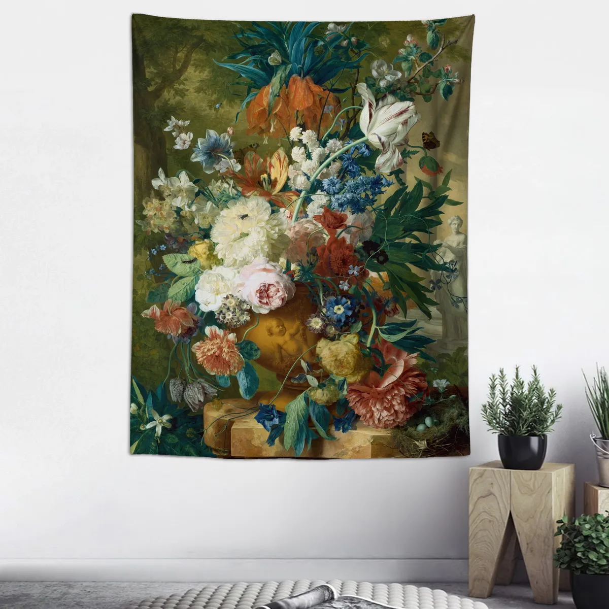 Tulip Flowers And Birds Oil Painting Tapestry Bohemian Garden Decoration Wall Decoration Tapestries Room Wall Fabric Tapestries Friend,Please kindly Note Before you order: