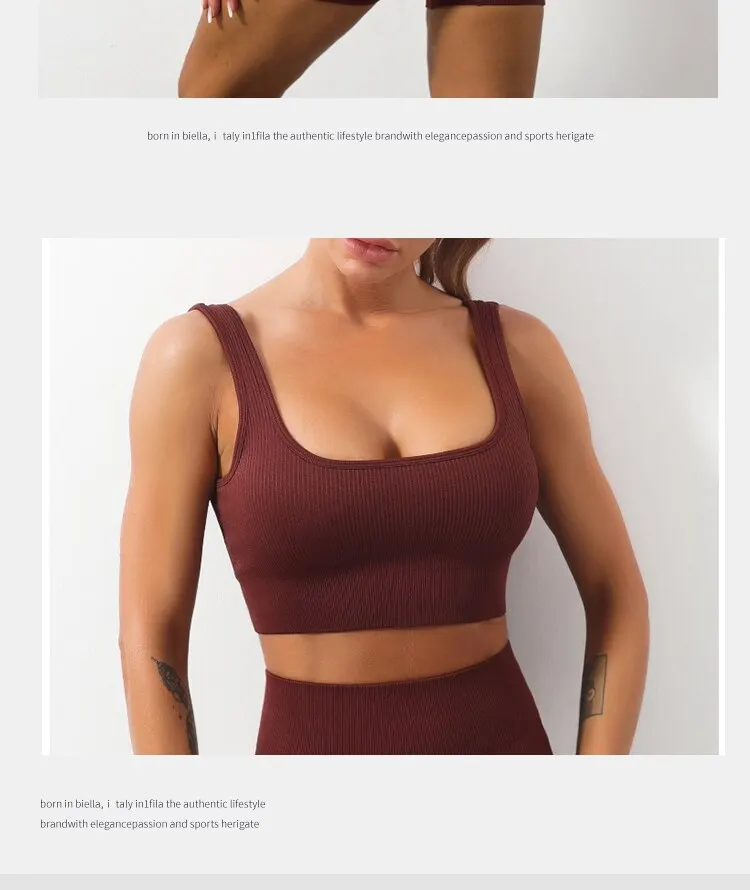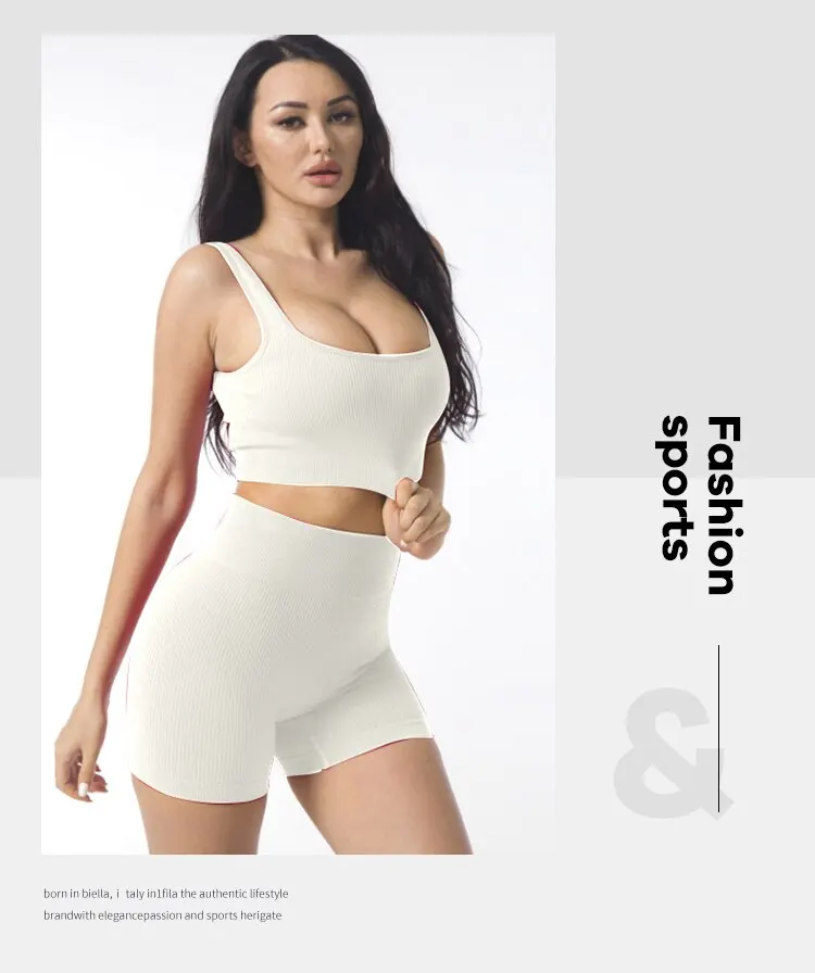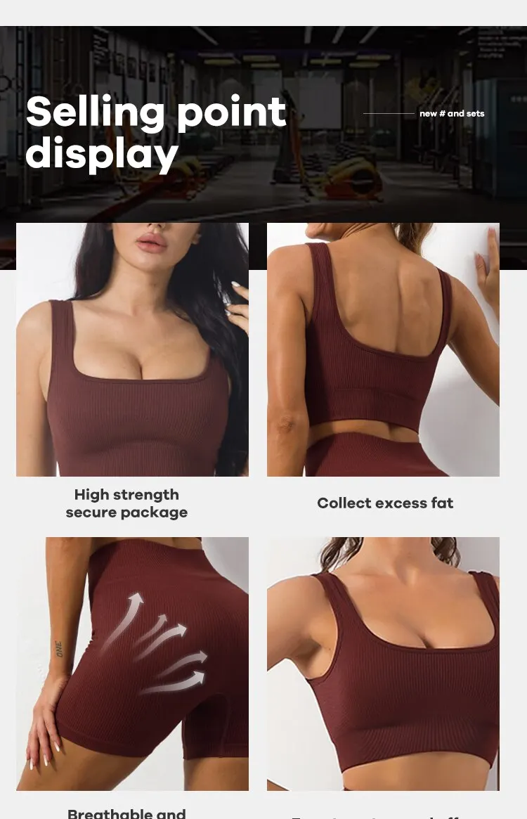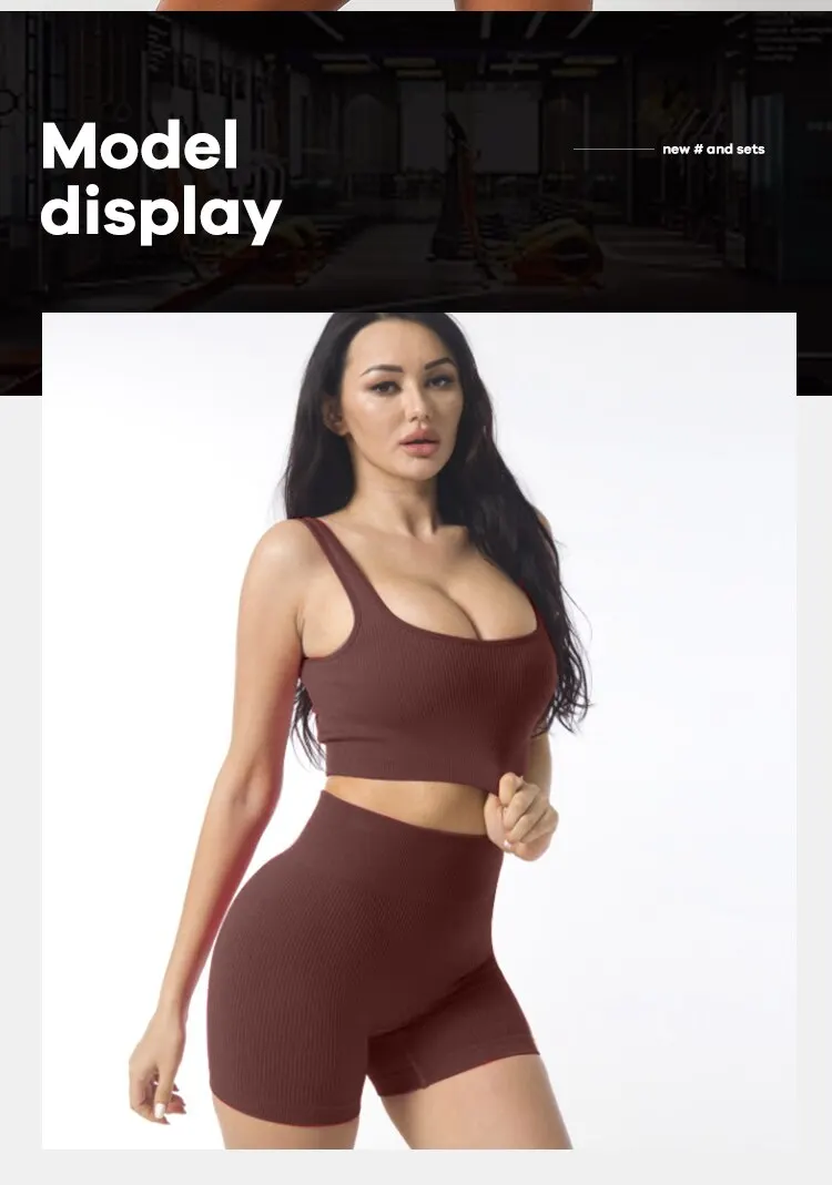 [Основная Ткань]-этот ребристый спортивный комплект изготовлен из легкой, впитывающий влагу силовой ткани. Высокая эластичность, удобство, воздухопроницаемость, сухость, растяжение в 4 направлениях для сжатия и подъема ягодиц, мышц верхней части ног и уменьшения вибрации мышц.