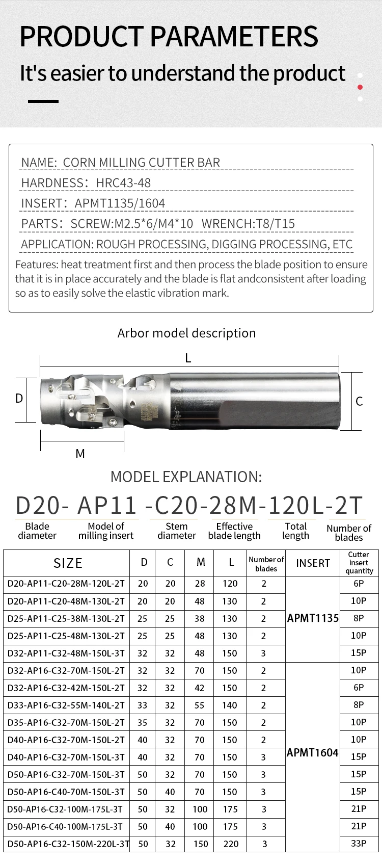 D20/D32/D40/Φ/16 120-175 мм фреза для кукурузы с ЧПУ, обрабатывающий центр, фреза, стержень, карбидная вставка APMT1135/1604