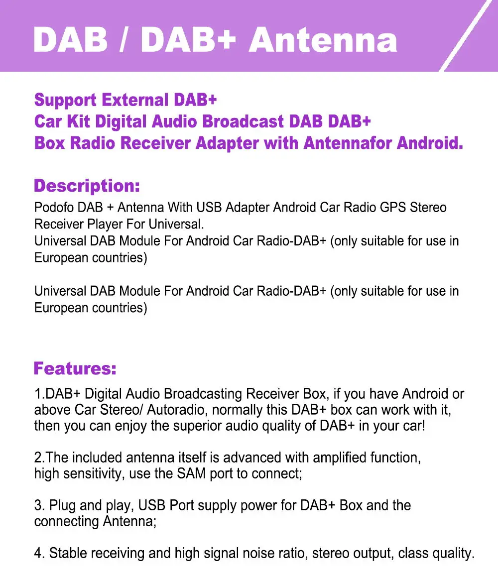 DAB + антенна с USB-адаптером Android автомобильное радио GPS стерео приемник плеер для универсального