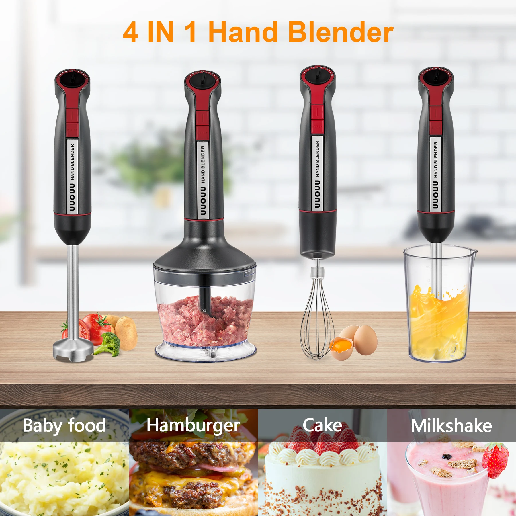 Dailyswee электрический ручной блендер 4 в 1 погружной ручной миксер кухонный комбайн измельчитель венчик ручной блендер из нержавеющей стали