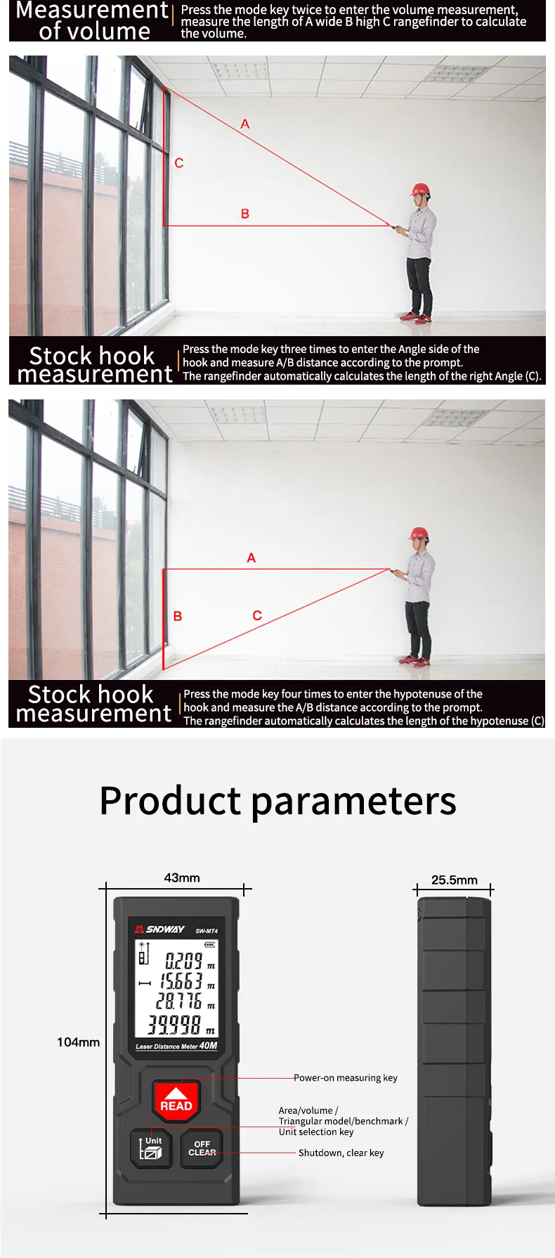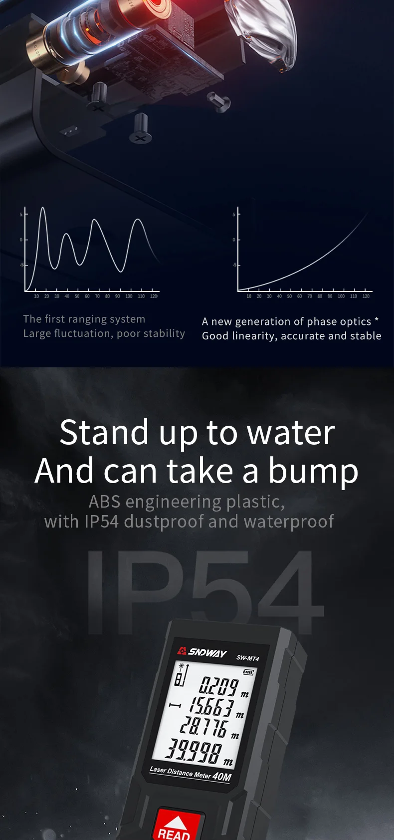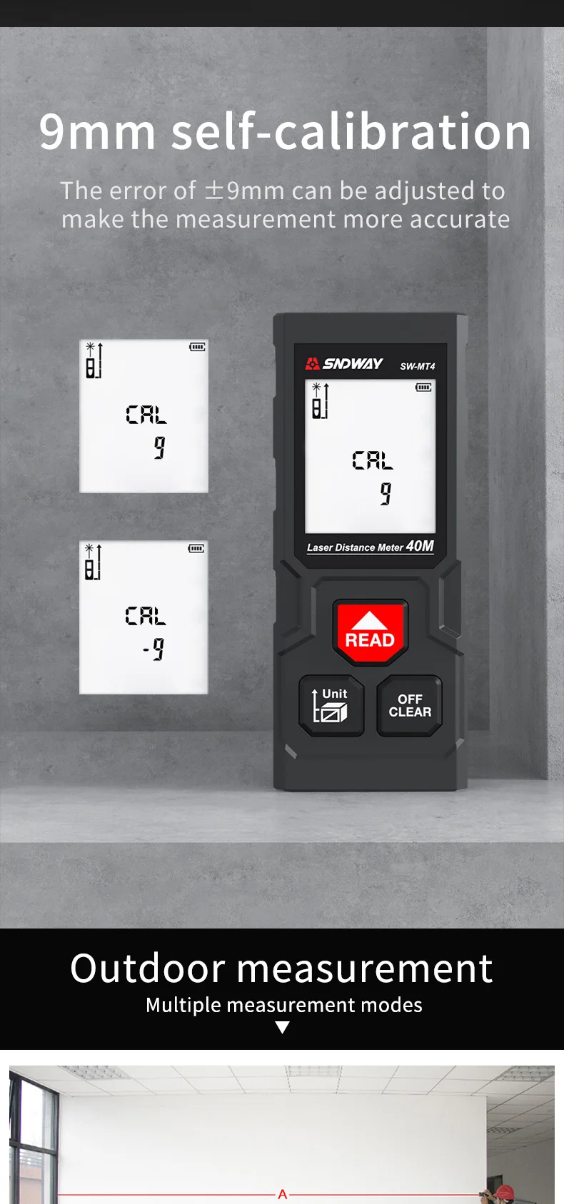 Наш лазерный дальномер специально разработан для точного измерения расстояния. Он поставляется с функцией измерения площади,