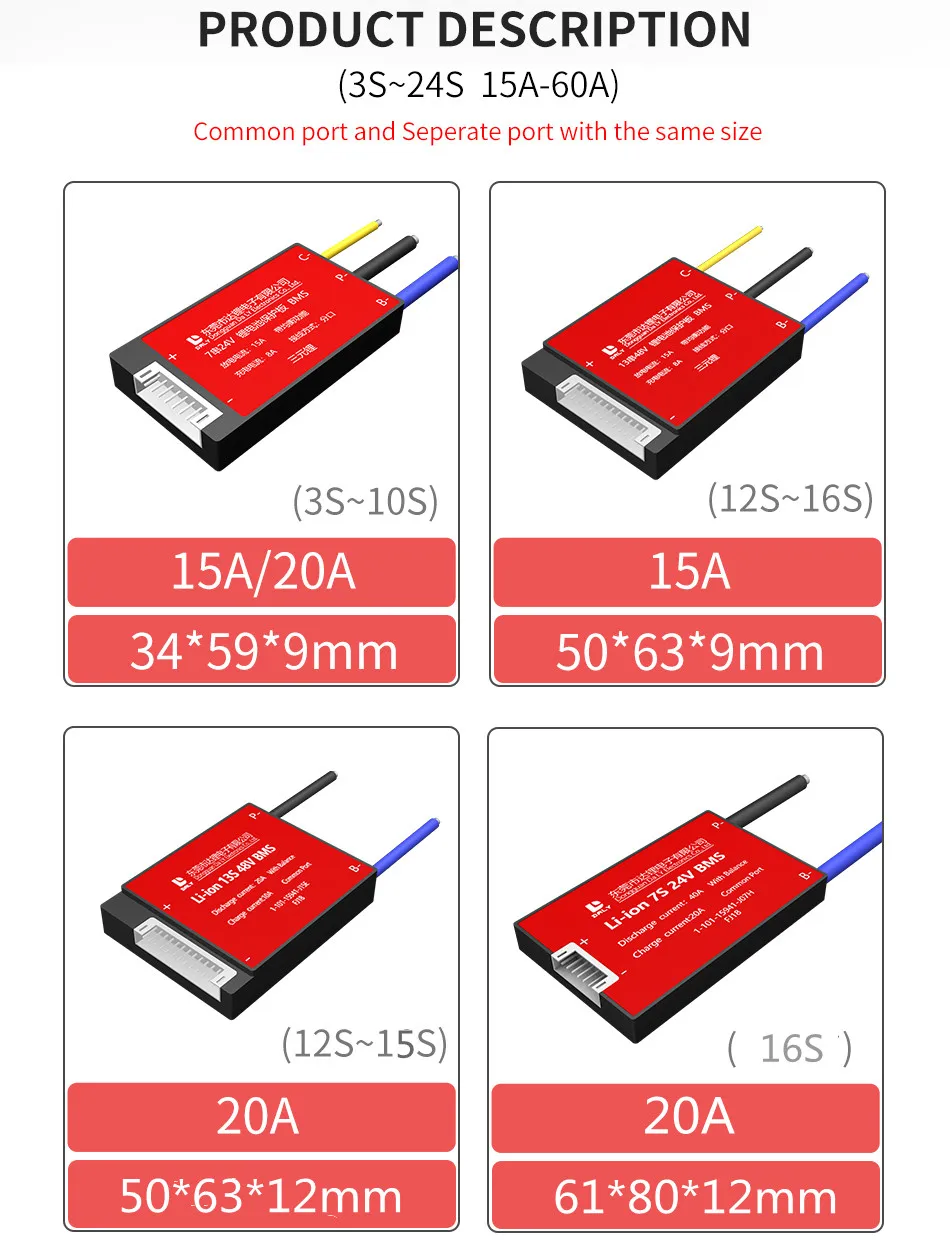 3S до 24S литий-ионный LiFePO4 аккумулятор Ebike DALY BMS 15A 20A 30A 40A 50A 60A Commom порт и отдельный порт с балансом