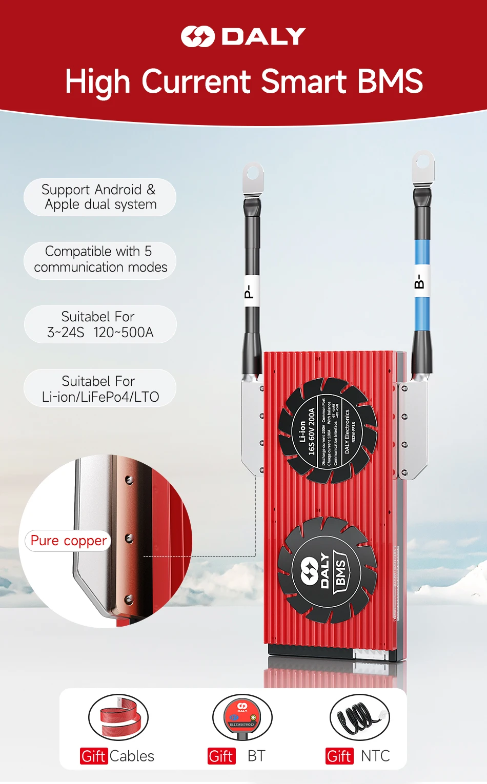 Daly BMS Lifepo4 с умным активным балансировщиком, планшетофон 12 В, 8S, 24 В, 16S, 48 В, 18650 А, а, аккумулятор CAN, эквалайзер для хранения энергии