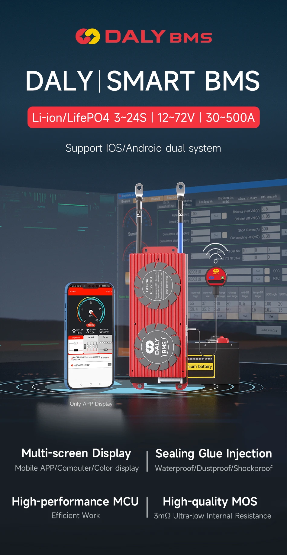 Daly Smart LiFePo4 16S 48V BMS 3S 4S 12V 7S 8S 24V 10S 36V 13S 20S 80A 100A 150A 200A 250A 500A Li-Ion с BT для батареи 18650