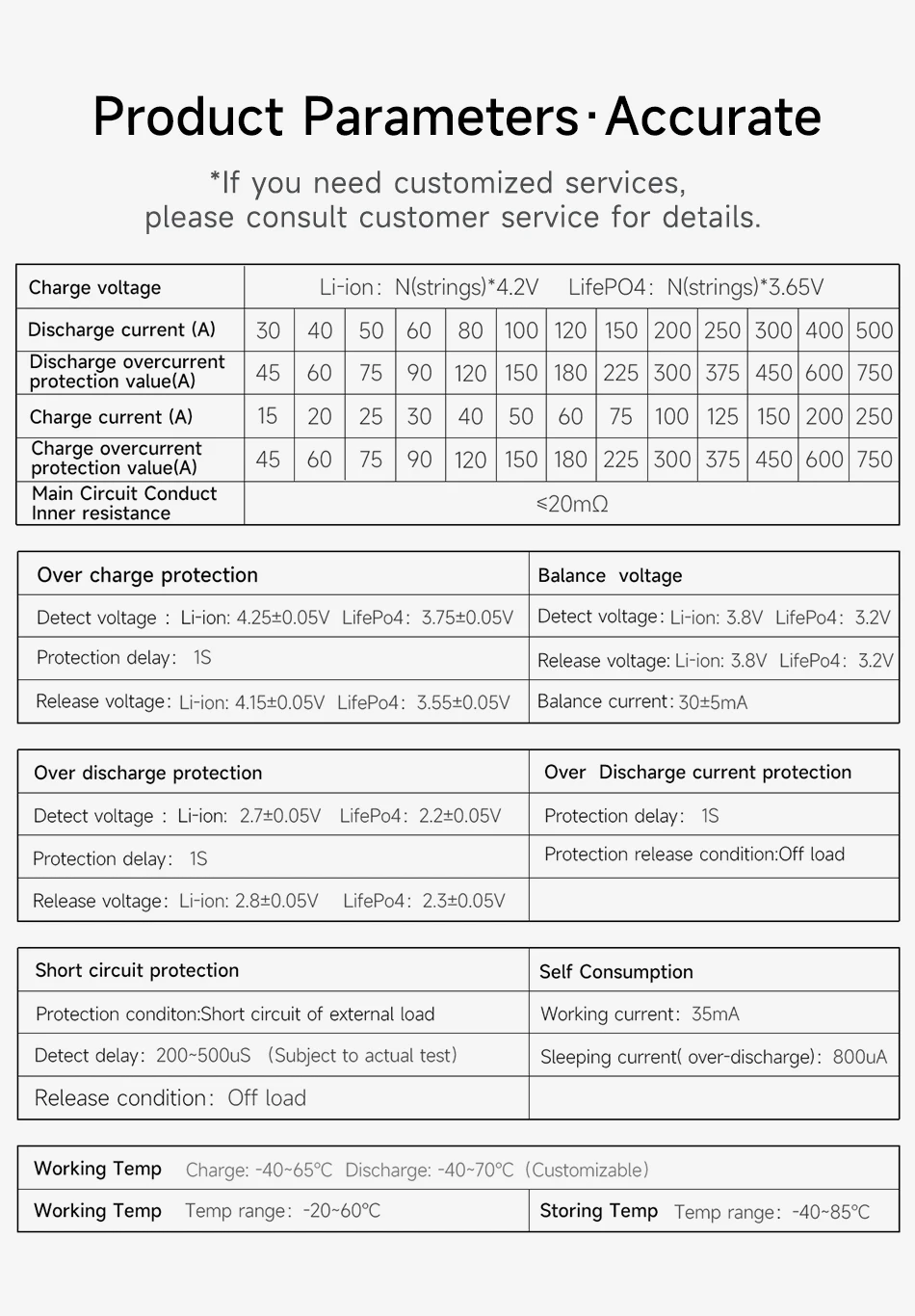 1. BMS была изготовлена высококачественной импортной микросхемой Mos и IC. Держите аккумулятор в течение длительного срока службы.