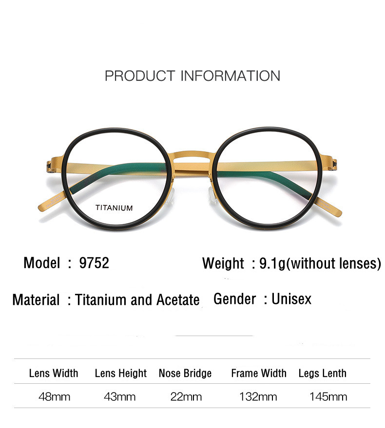 Дания брендовые титановые оправы для очков для мужчин и женщин, ретро круглые оптические очки для близорукости, безвинтовая оправа для очков по рецепту 9752