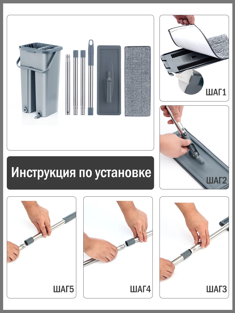 DARIS Плоская Швабра для пола, набор с ведром для мытья пола, ручная Швабра без помощи рук, ведро для пола из нержавеющей стали