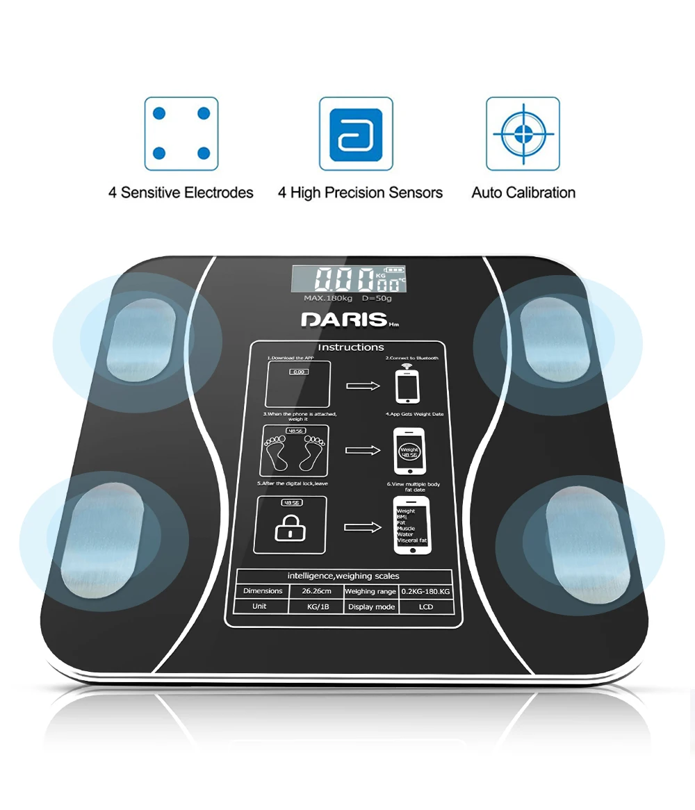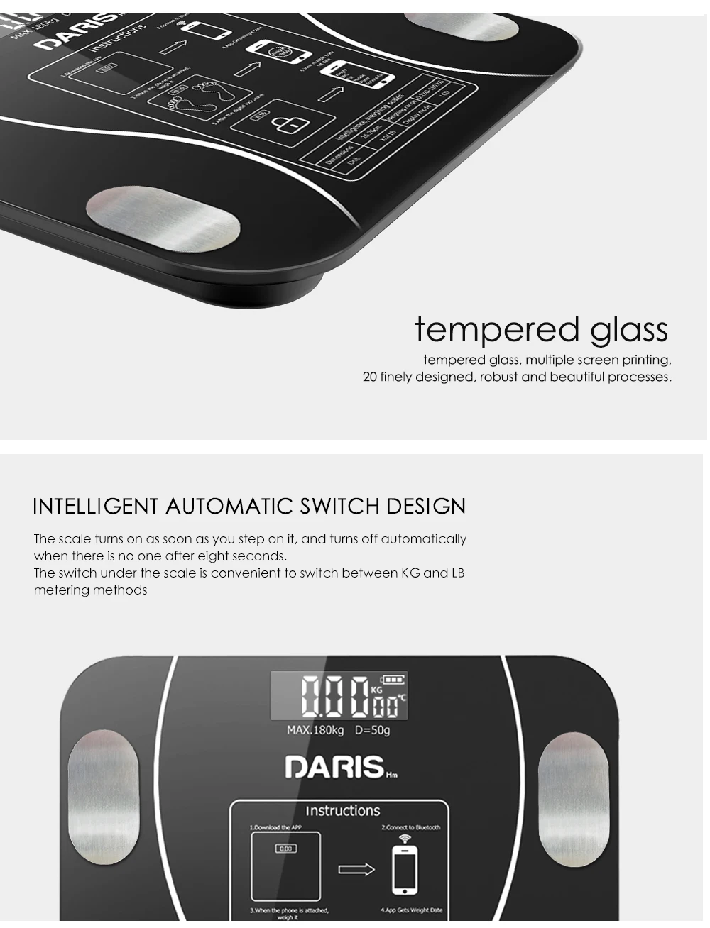 DARIS Умные беспроводные цифровые весы,анализатор массы тела для ванной комнаты,приложение для смартфона,совместимое с Bluetooth