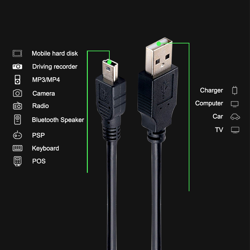 Кабель для зарядки данных Шнур адаптер USB на USB штекер на мини 5-контактный B для MP3 mp4-плеера Автомобильный видеорегистратор GPS камера HDD Mini USB кабели