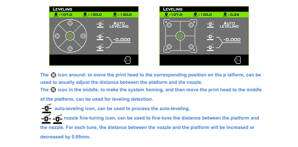 Auto Leveling Parameters Description: