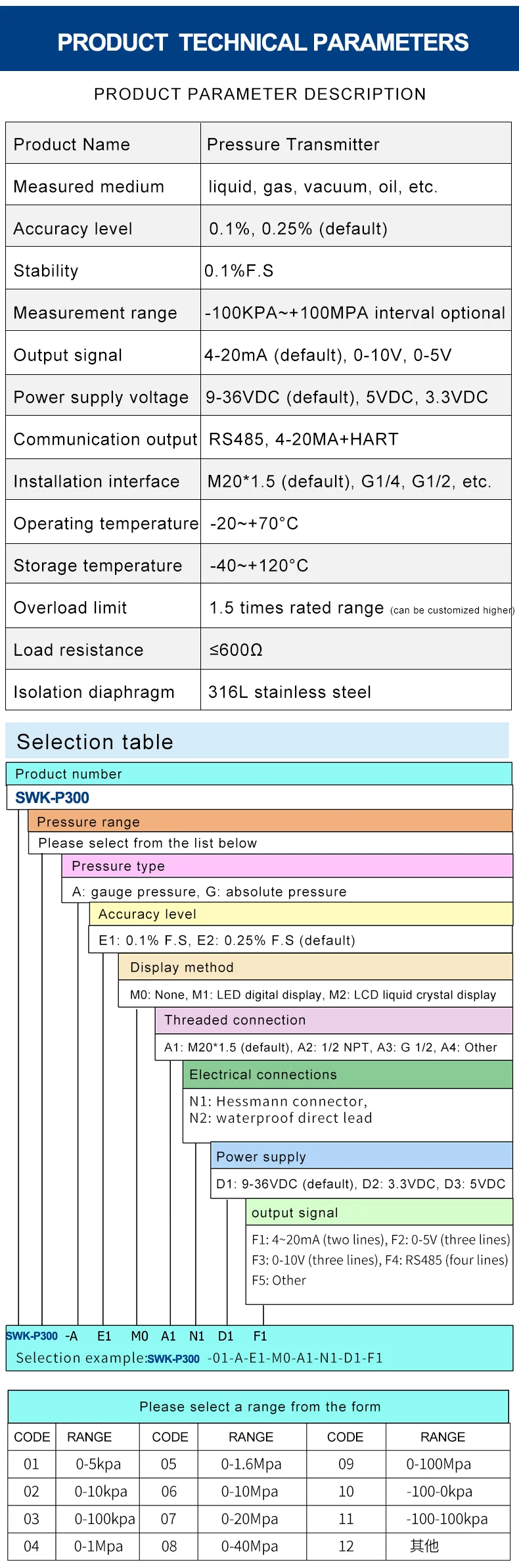 И дайте мне знать диапазон, выходной сигнал, источник питания, запрос размера резьбы