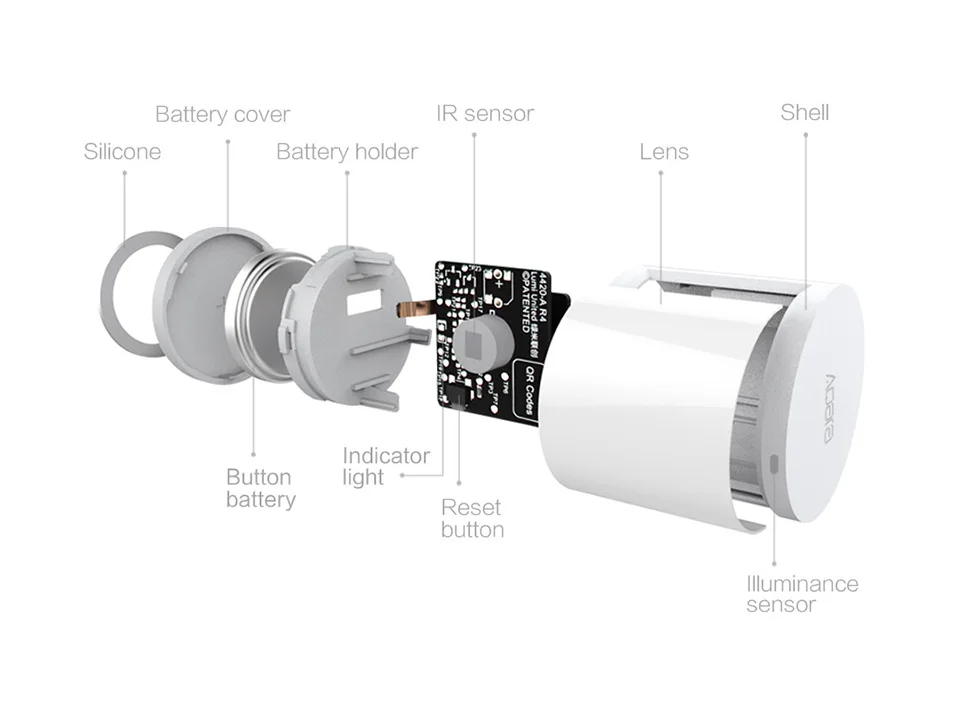 Японский инфракрасный датчик используется для обнаружения движения человека через движущийся источник тепла, а американская Полиолефиновая линза Френеля используется для высокоточного обнаружения. Корпус изготовлен из материала, защищающего от ультрафиолета, и цвет не выцветает, что позволяет использовать его в течение длительного времени. Для повышения безопасности используется высококачественный огнестойкий материал.