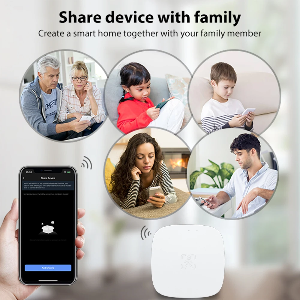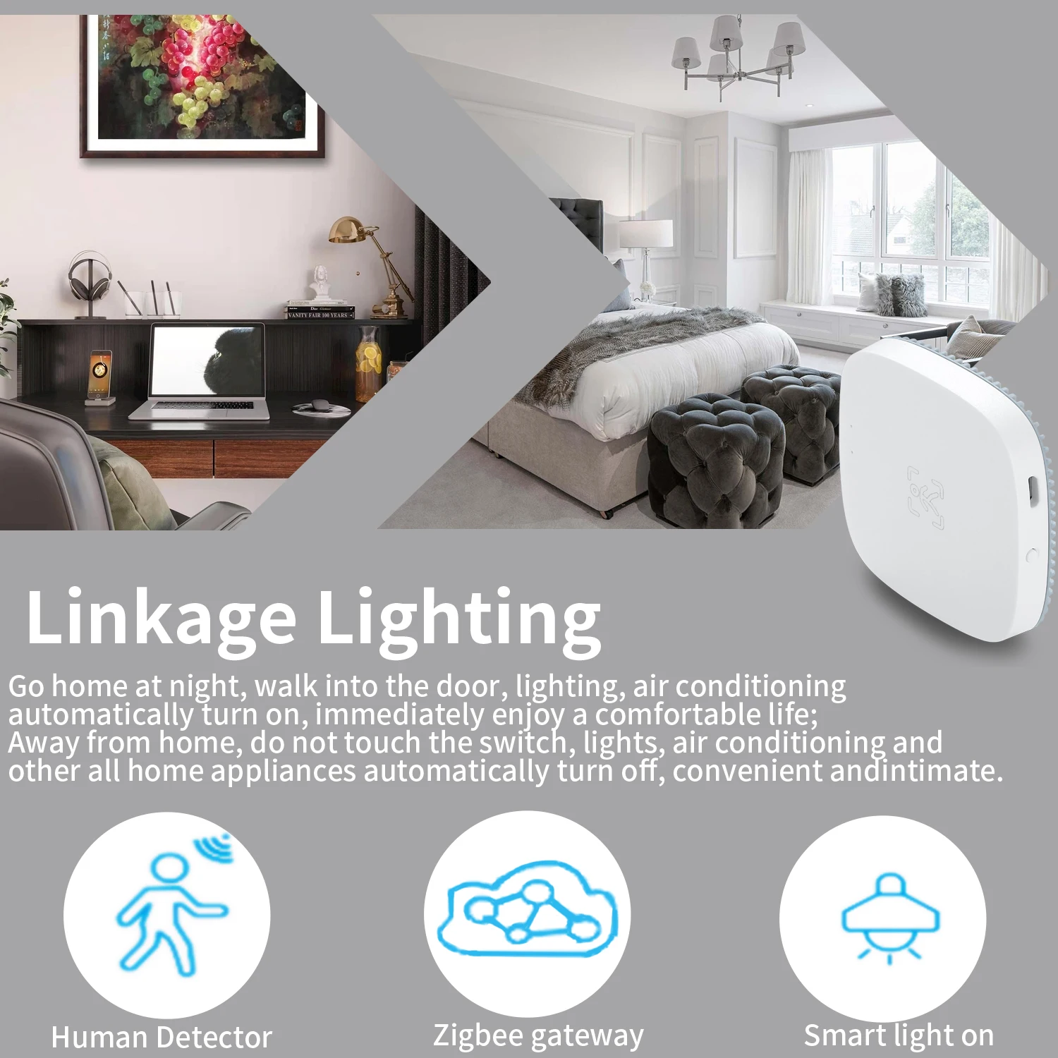 Требуется концентратор ZigBee: для этого датчика присутствия человека ZigBee требуется шлюз Tuya ZigBee, выступая в качестве центрального моста для всех интеллектуальных устройств Tuya ZigBee с чрезвычайно стабильным сигналом и действительно необходимой для интеллекта всего дома.