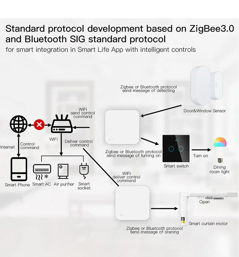 Сигнал WiFi и ZigBee охватывает широкий диапазон, сильную помехоустойчивость, может легко проходить через стену.