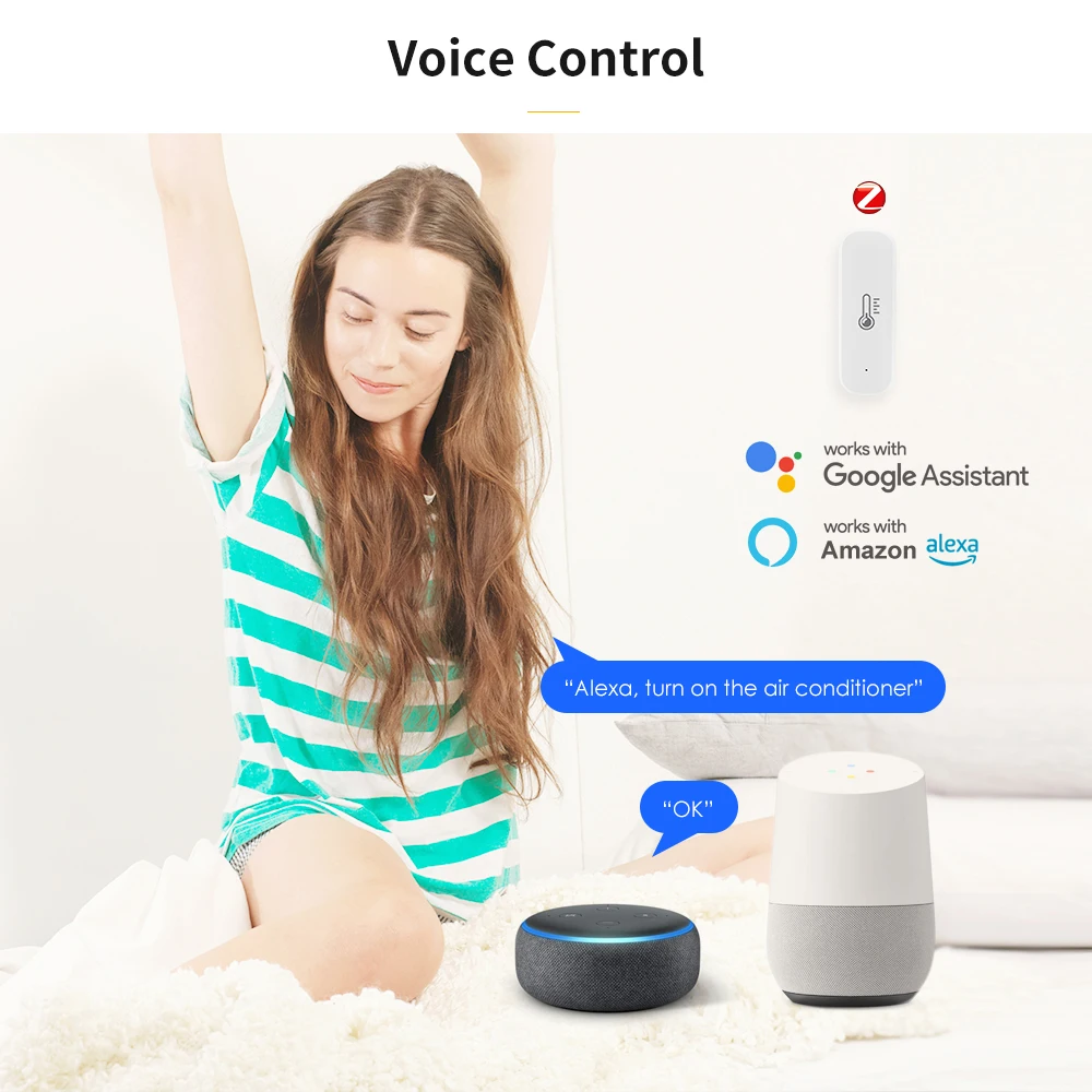 Датчик температуры AUBESS ZigBee Приложение Tuya Smart Life Домашний термометр с подключением через Alexa Google Home Assistant Голосовое управление