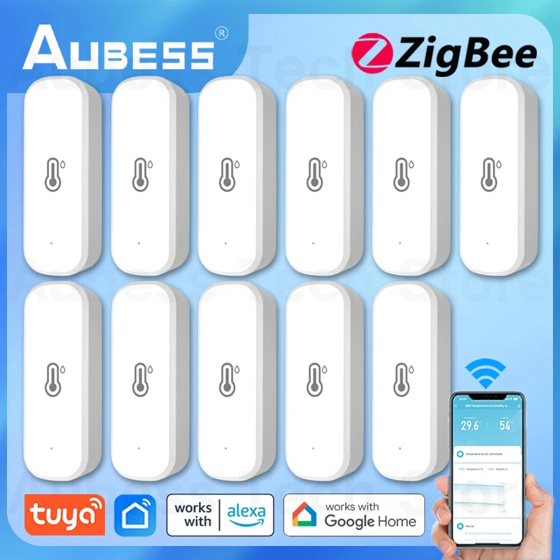 Датчик температуры и влажности AUBESS ZigBee, термометр с подключением к умному дому, для Alexa Google Assistant Smart Life