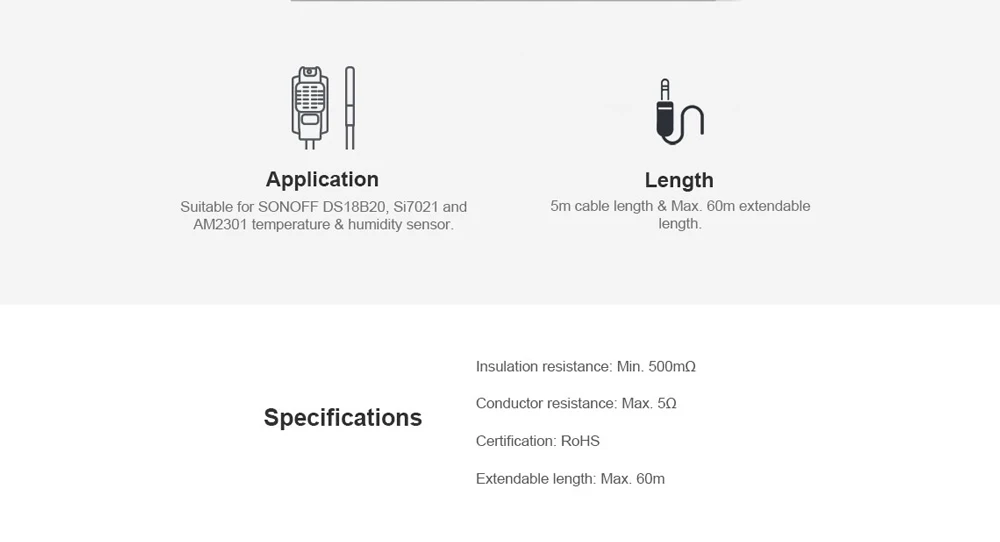 AL560-это Удлинительный кабель датчика, который может подключать датчики температуры и влажности SONOFF, чтобы удлинить ваши устройства на расстояние 60 м, подходит для SONOFF DS18B20, Si7021 и AM2301.