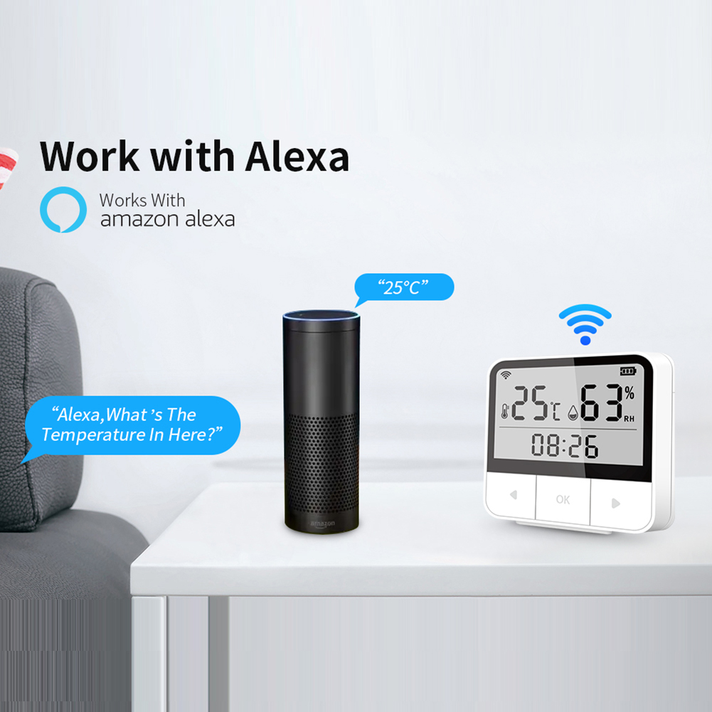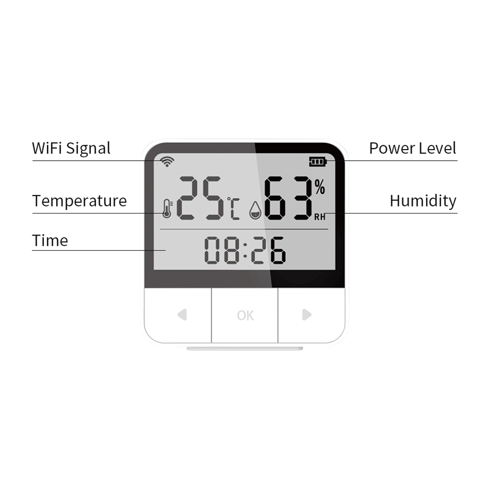 4. Многофункциональное использование:Датчик температуры и влажности можно разместить на столе, столе, офисе или повесить на стену.