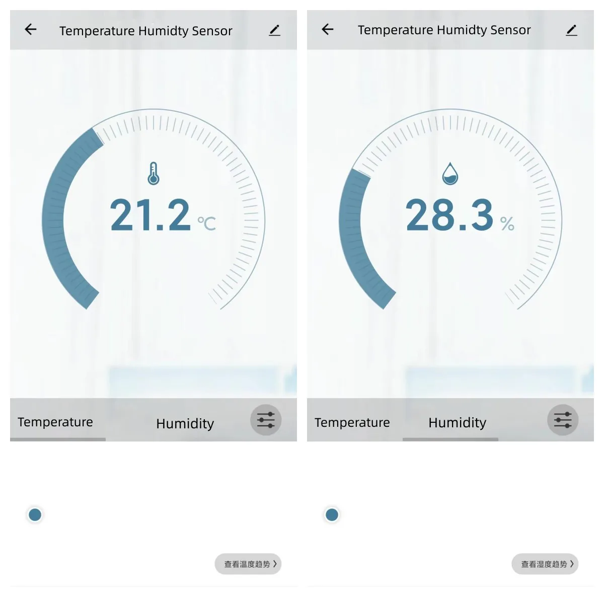 ● Продукт и приложение отображают текущее значение температуры и влажности в режиме реального времени.