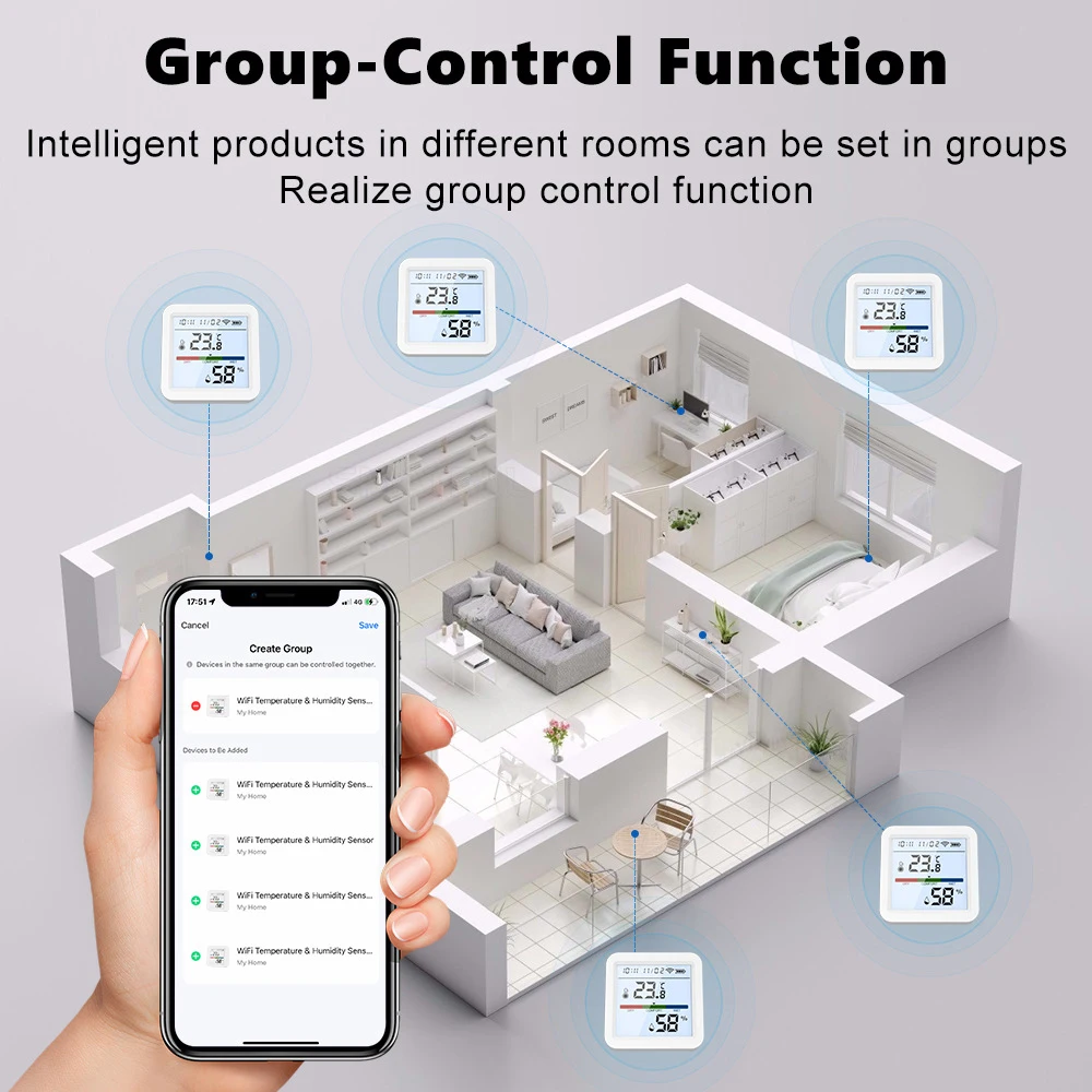 -[Scene Linkage] Этот датчик можно использовать в качестве источника данных о температуре и влажности для Tuya Smart, Smart Life, Amazon Alexa и Google Home. В зависимости от источника данных вы можете выполнять множество автоматизированных процессов.