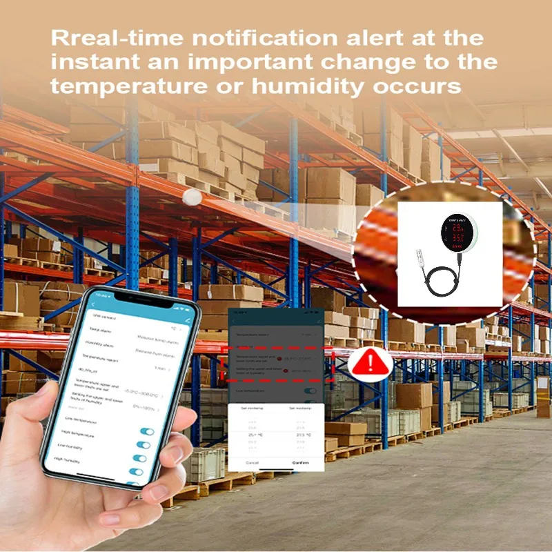 • МОНИТОР ВЛАЖНОСТИ ТЕМПЕРАТУРЫ WIFI С ДВОЙНОЙ СИГНАЛИЗАЦИЕЙ: Подключаясь к Wi-Fi 2,4 ГГц (без поддержки 5G), вы можете удаленно контролировать интеллектуальный датчик влажности. Вы можете установить верхний/нижний предел будильника через приложение Tuya/Smart life. Датчик температуры Wi-Fi подаст звуковой сигнал и отправит уведомление на ваш телефон, когда значение превышает заданное.