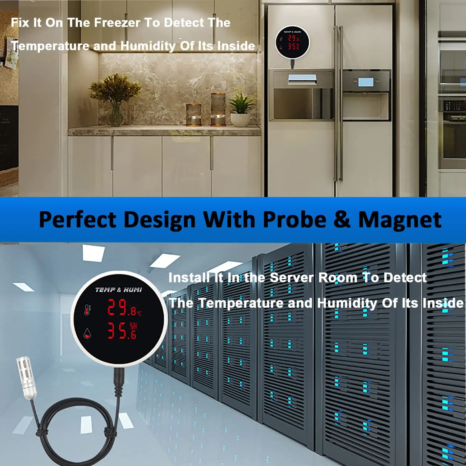 • Его можно использовать в качестве датчика температуры датчика влажности в помещении без добавления зонда, подходит для детской комнаты, квартиры, теплицы, дома на колесах, подвала, гаража и других мест.