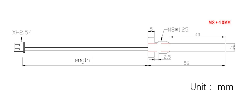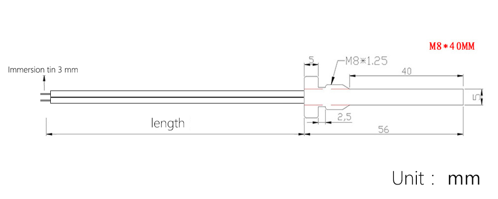 Характеристики корпуса: зонд с винтовой резьбой M8 * 1,25*40 мм длиннее