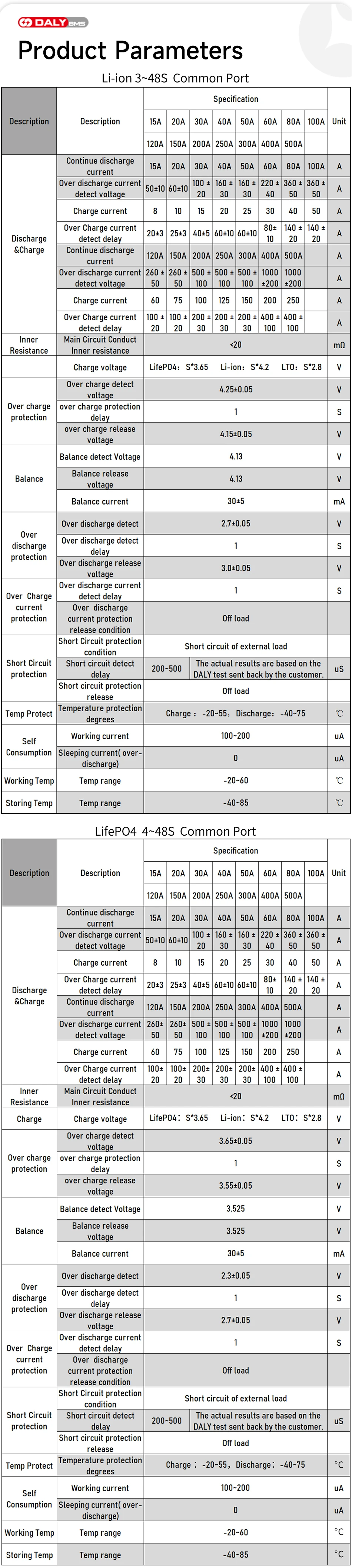Обратите внимание, что серия BMS исправлена, например 4S LiFePO4 BMS может использоваться только в аккумуляторной батарее 4S LiFePO4;