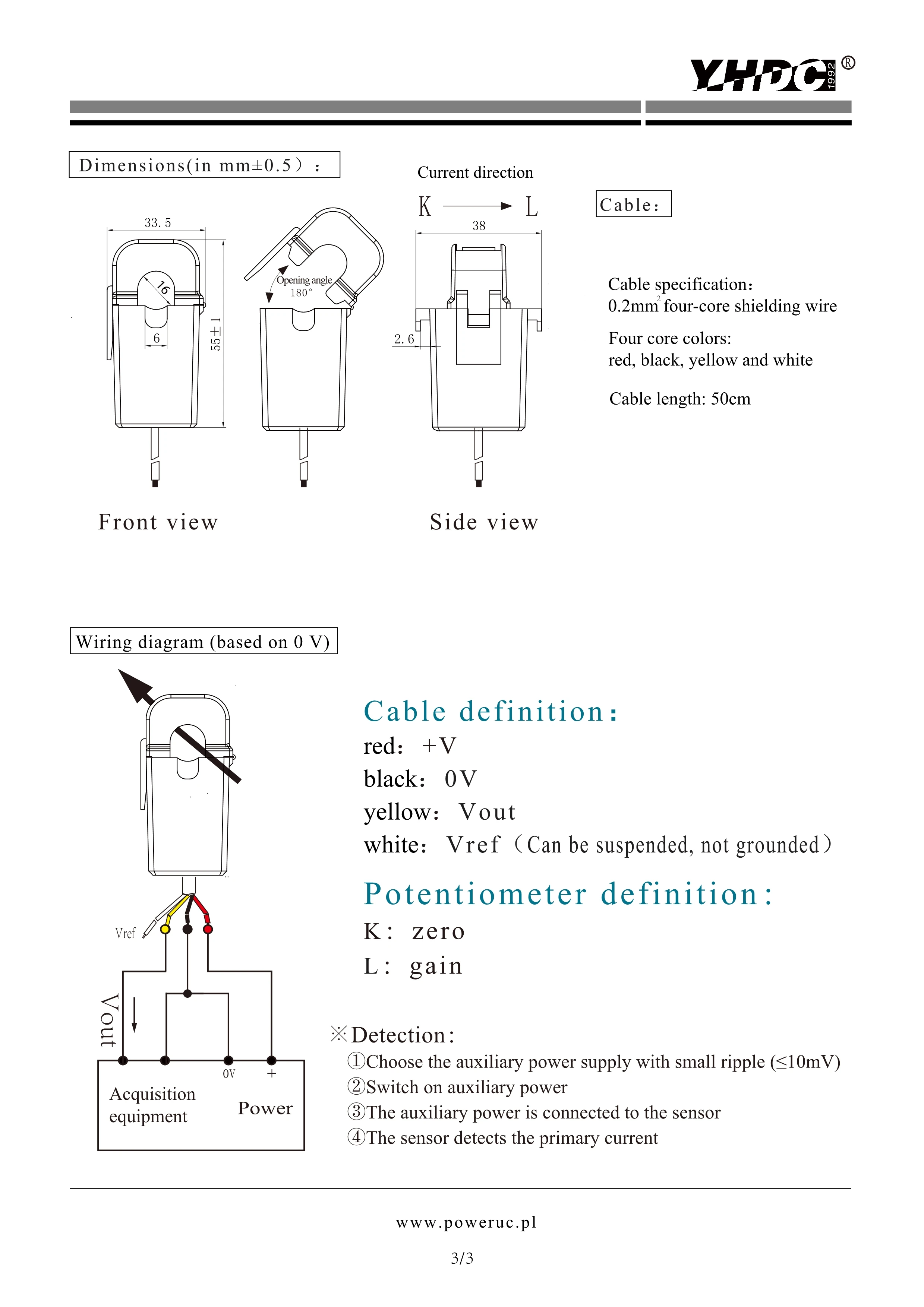 Датчик тока разделенного сердечника Холла HSTS016L, вход ± 10A ± 20A ± 30A ± 50A ± 100A ± 150A ± 200A, выход 2,5 ± 0,625 в 1%
