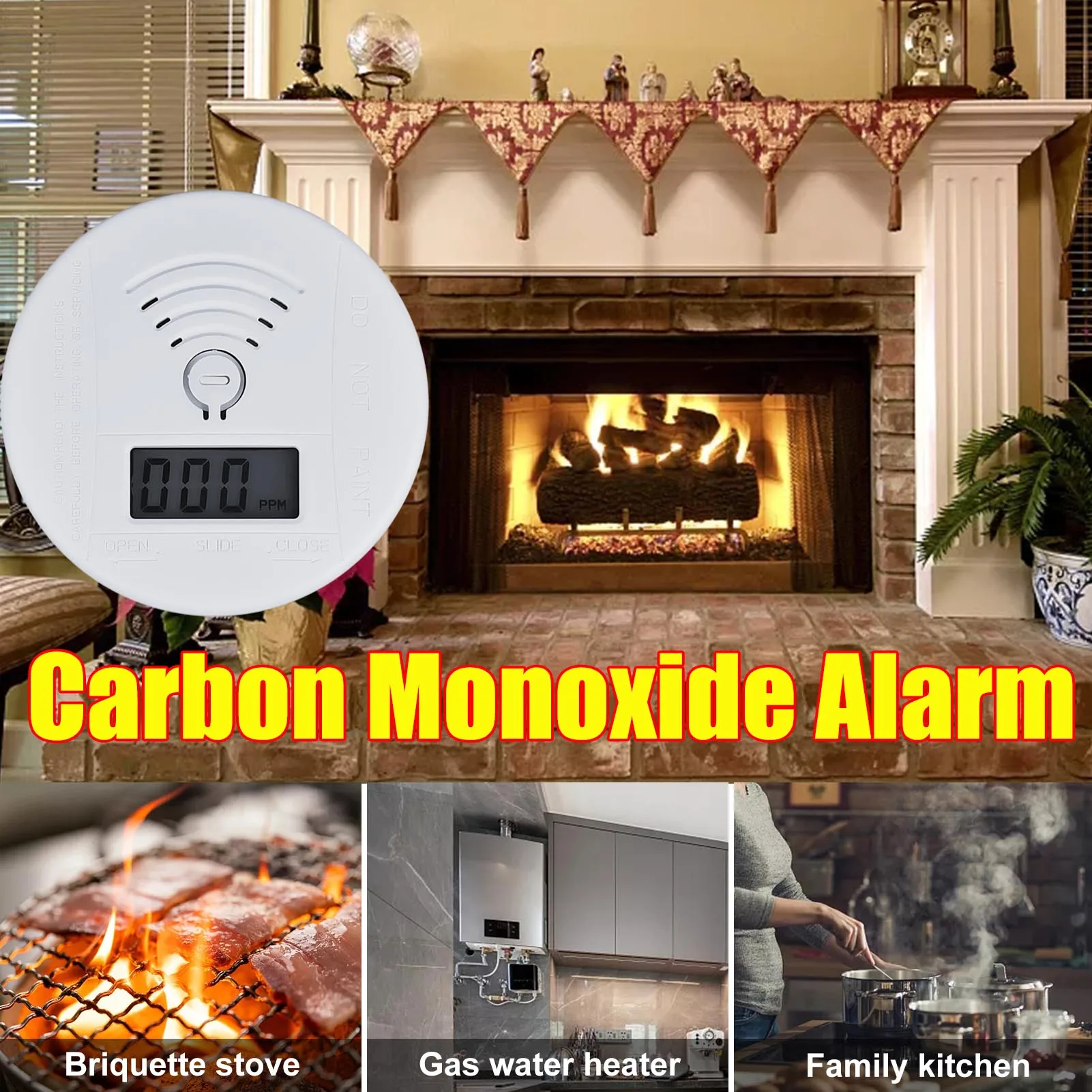 Мини-датчик СО детектор угарного газа на батарейках со светодиодным цифровым дисплеем звуковой сигнал подходит для домашней кухни