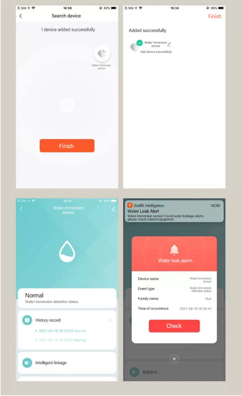 При разрыве водопровода и большом количестве воды, затопление будет звучать звуковой сигнал, и в то же время Включите умное гнездо и закройте электромагнитный водяной клапан в сочетании