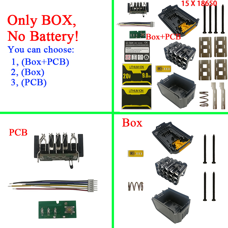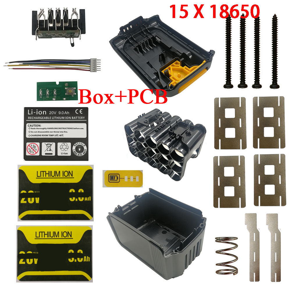 DCB200 литий-ионный аккумулятор 15*18650, пластиковый чехол, защитная печатная плата для зарядки, защитный корпус для DeWalt 18 в 20 в DCB203 DCB204