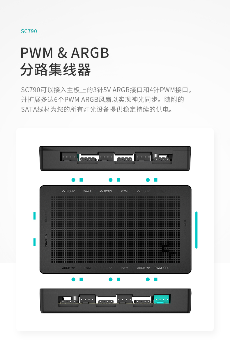 DeepCool SC790 ARGB Hub PWM 2-in-1 HUB Chassis Fan Transfer 1 Minute 6 Shenguang Synchronization