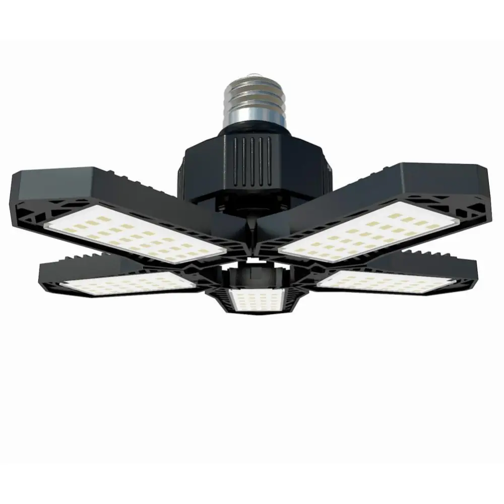 Деформируемая лампа 5000 люмен с 5 регулируемыми панелями, светодиодные лампы для гаража, лампа с лезвием вентилятора для дома, прочная лампа для потолочного магазина, Рабочая лампа E26/e27