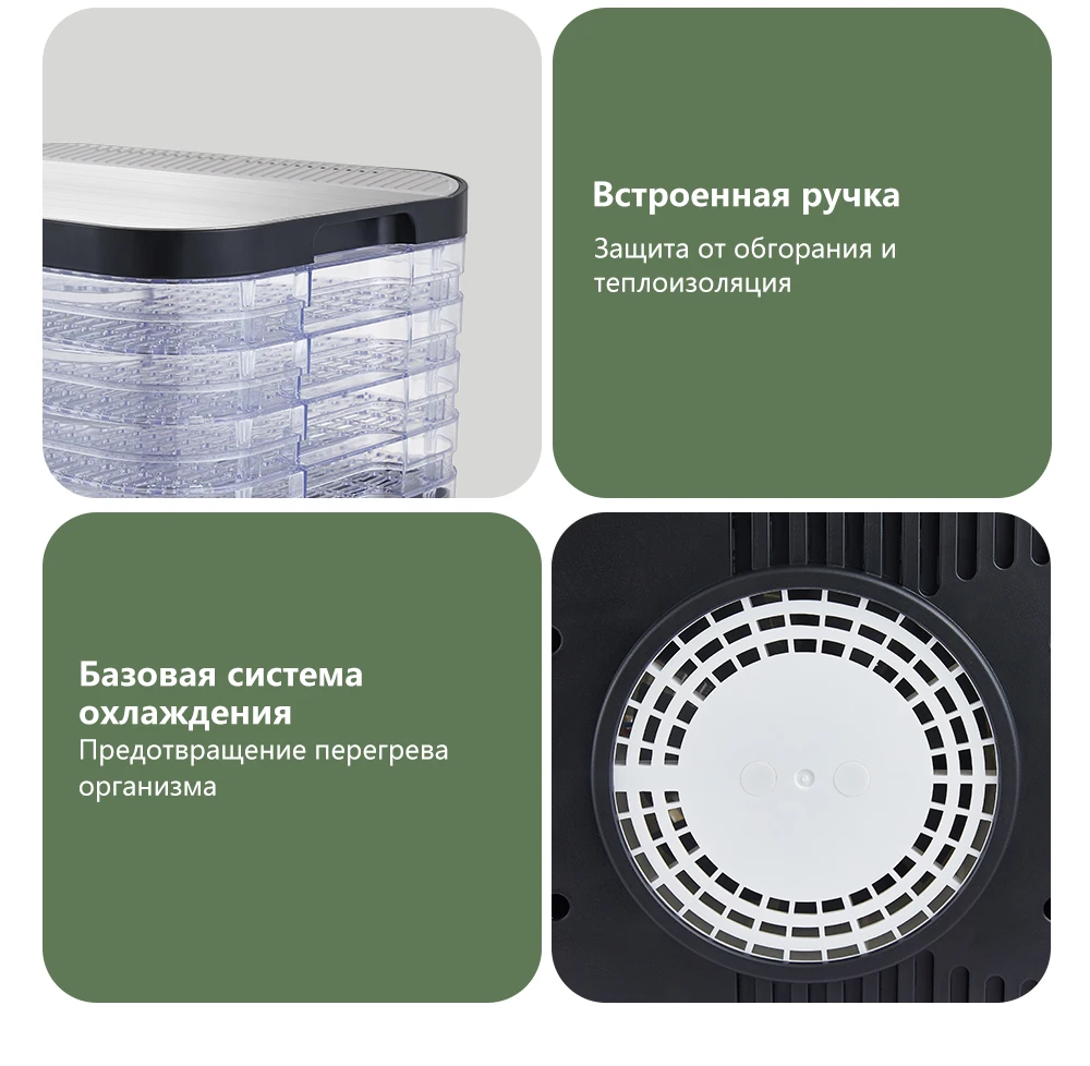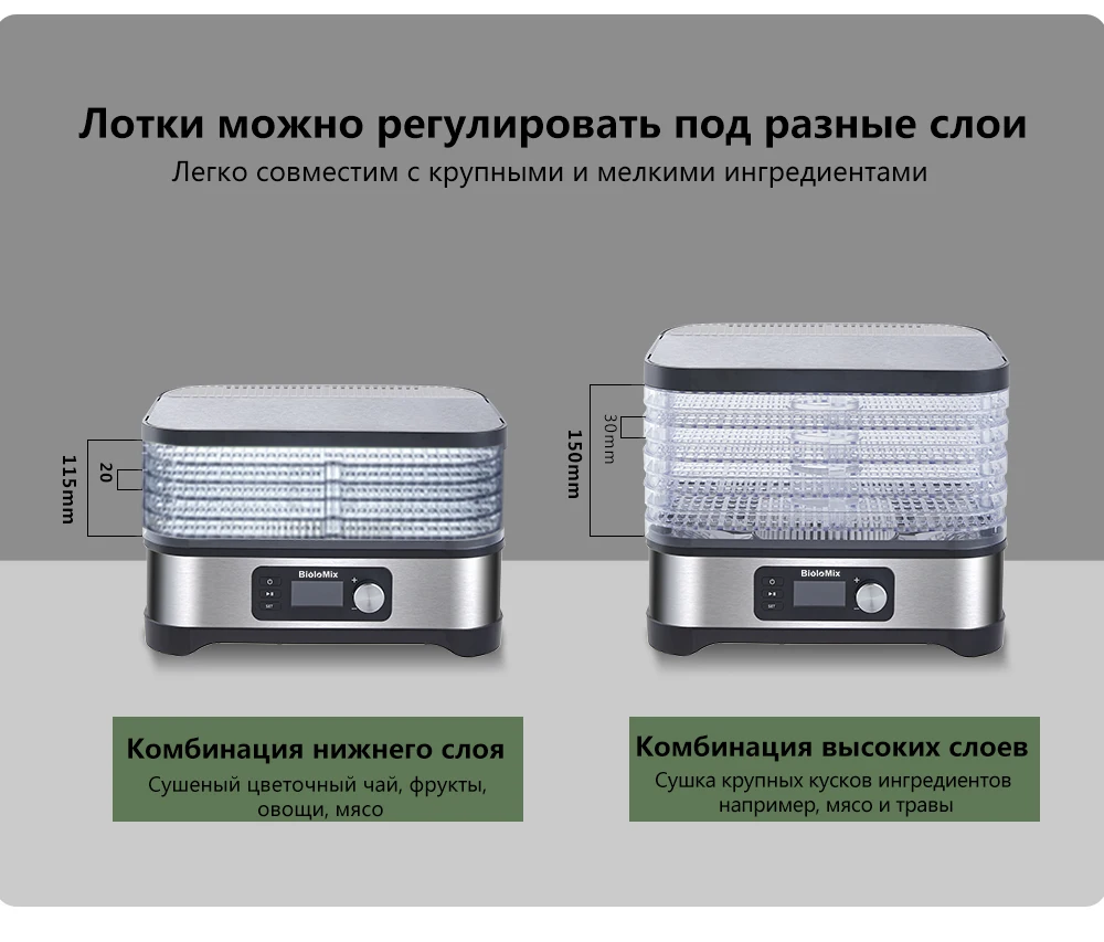 • 5 слоев лотков без BPA-этот Дегидратор предназначен для сушки 5 больших емкостей, что достаточно для хранения большинства пищевых продуктов и создания равномерной сушки; 5 лотков обеспечивают максимальное удобство