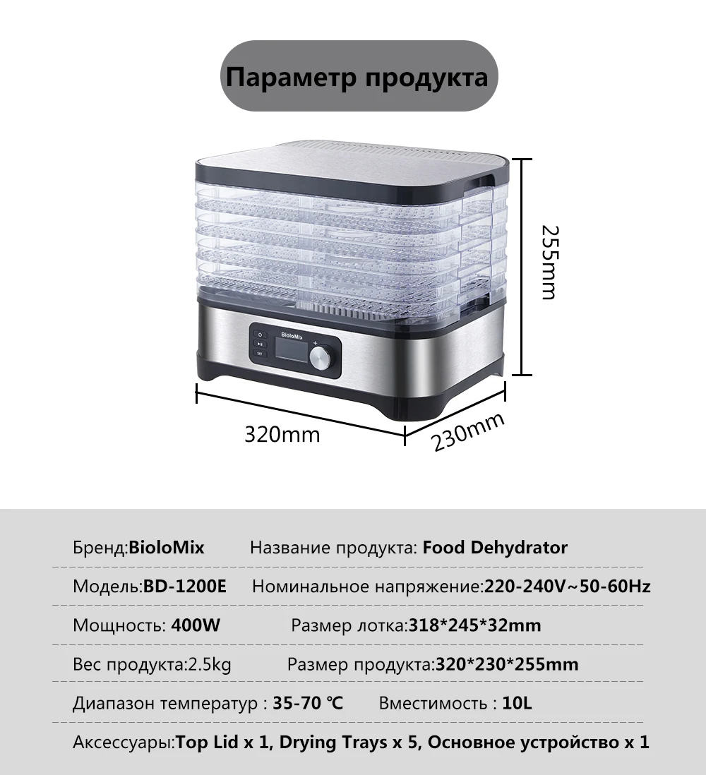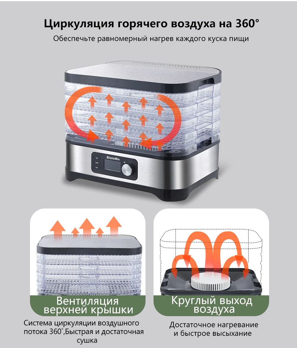 Дегидратор BioloMix с цифровым таймером и контролем температуры, модели в ассортименте