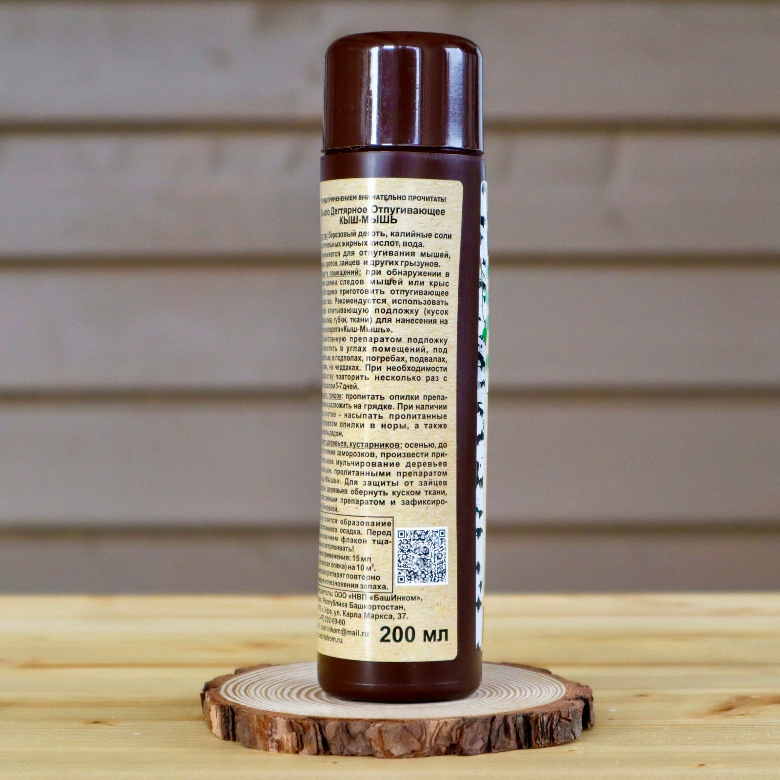 Описание: Применяется для отпугивания мышей, крыс, зайцев, кротов и других грызунов. Средство представляет собой густую коричневую жидкую смесь, основными ингредиентами которой являются березовый деготь и калийные соли жирных кислот. Запах натурального дёгтя отпугивает вредителей, заставляя их покидать садово-огородные помещения, не подпускает к грядкам и саженцам, изгоняет с участка кротов.