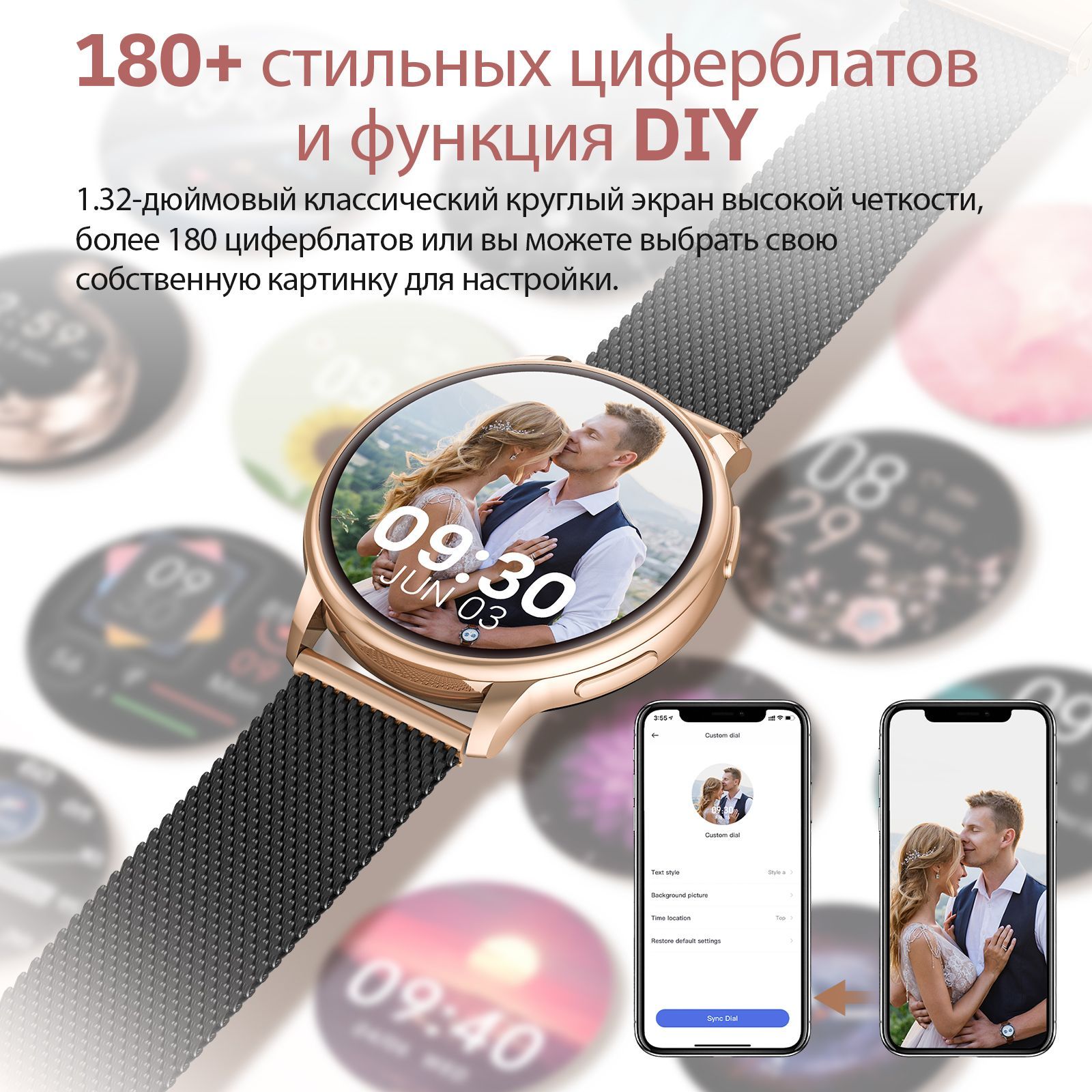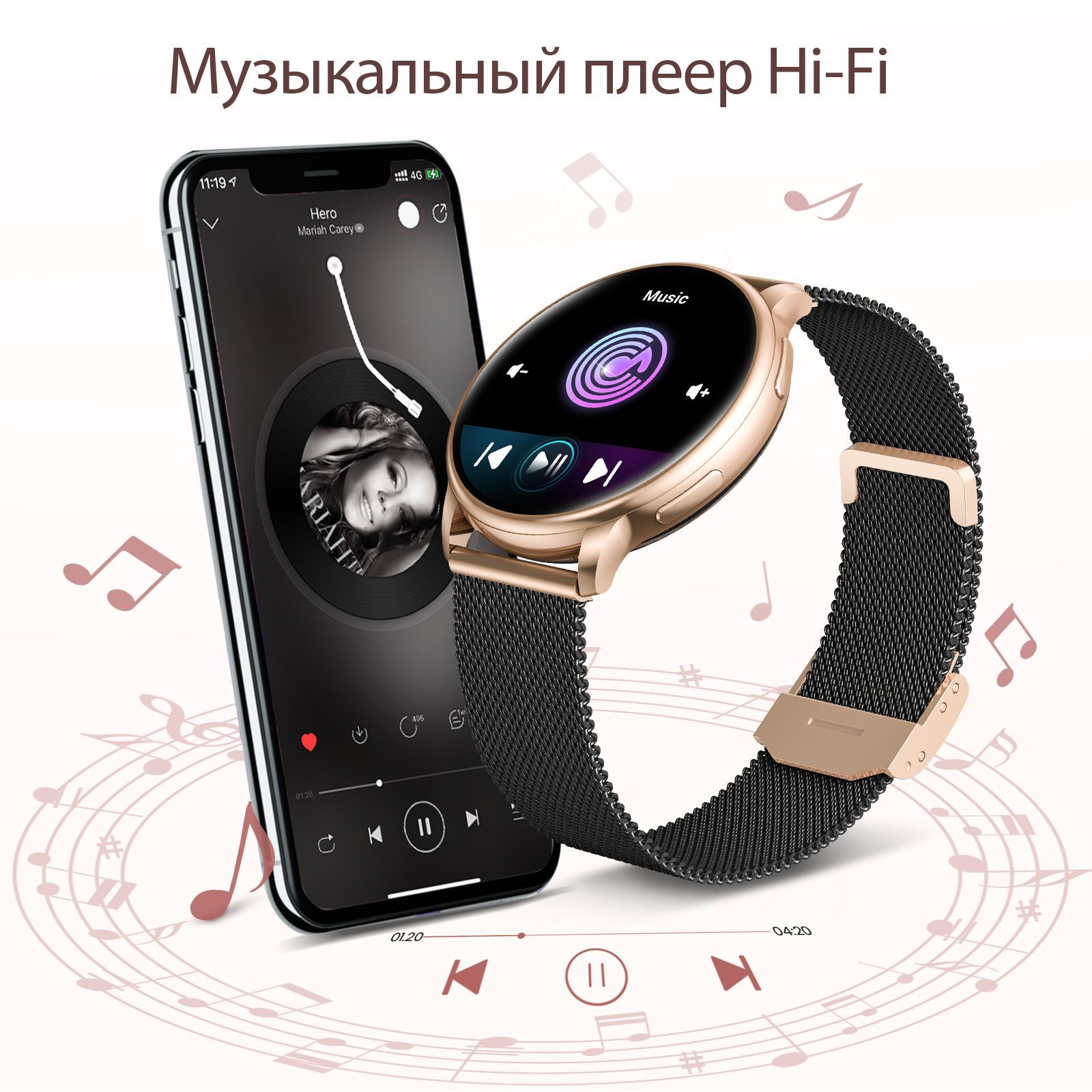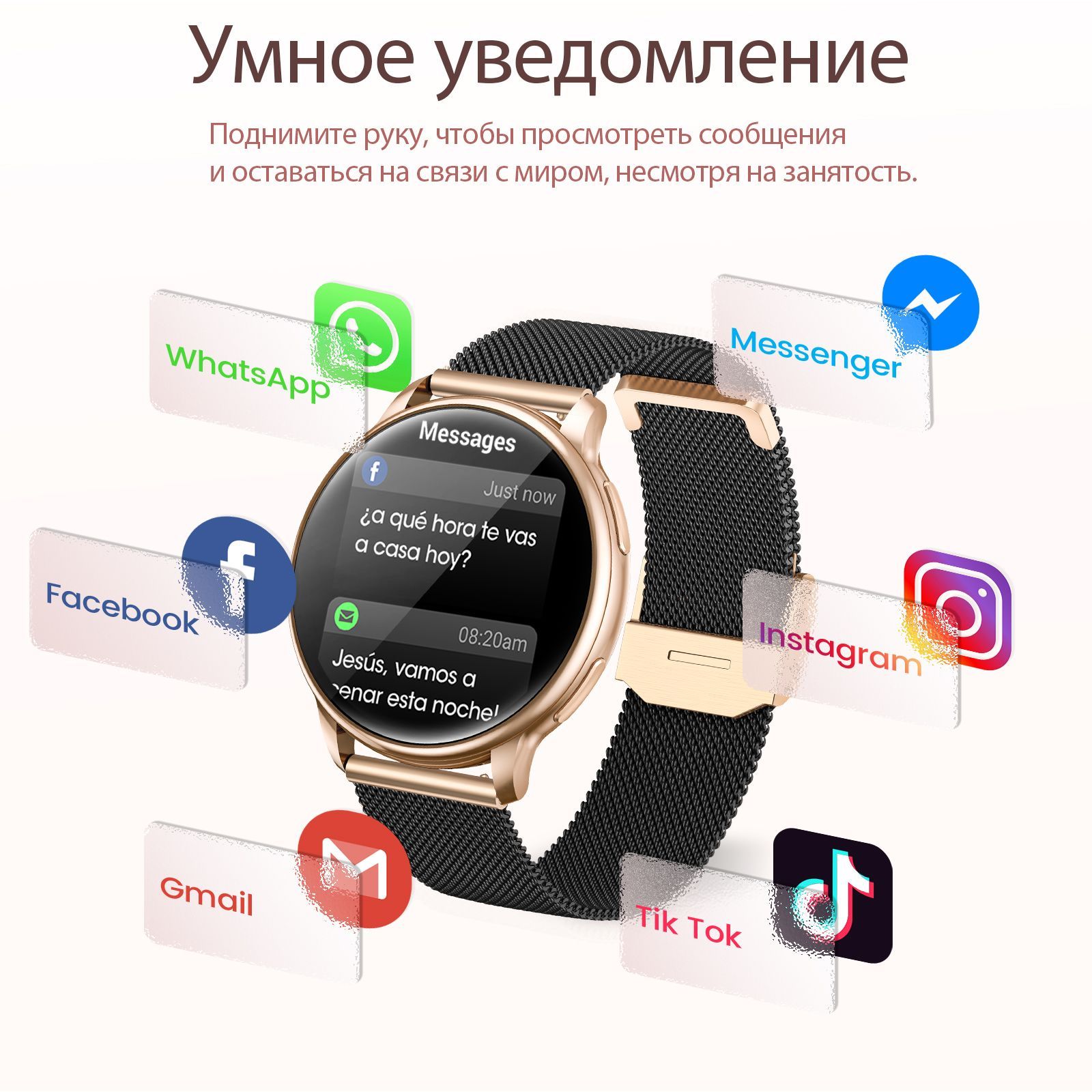 Описание: Всегда оставайтесь онлайнЗаняты на работе, нет времени посмотреть на свой телефон? Занимаетесь спортом, а телефона рядом нет?Смарт-часы поддерживают функцию вызова по Bluetooth 5.1, используют высококачественные динамики и микрофоны, а также могут совершать и принимать звонки без установки SIM-карты.Кроме того, он также поддерживает напоминания о звонках, SMS и SNS-уведомления для различных приложений (поддерживает российскую систему).Позвольте вам всегда быть онлайн, чтобы люди, которые заботятся о вас, могли чувствовать себя более непринужденно.Вечный элегантный стильСмарт-часы Ms. DekeFi оснащены цветным TFT-дисплеем с диагональю 1,32 дюйма, высоким разрешением 360 x 360 пикселей и ультратонким и легким корпусом толщиной 10 мм, который очень удобно носить.Он поставляется с двумя ремешками: элегантным миланским ремешком и силиконовым ремешком, приятным для кожи.более 120 спортивных режимовСмарт-часы имеют спортивные режимы, такие как бег, прыжки со скакалкой, езда на велосипеде, настольный теннис, бадминтон, альпинизм, баскетбол, футбол, прыжки с трамплина, эллиптический тренажер, йога и т.д.Каждое упражнение, которое вы выполняете, записывается в режиме реального времени, так что вы можете быть более уверены в своих упражнениях и творить чудеса столько, сколько вам заблагорассудится!