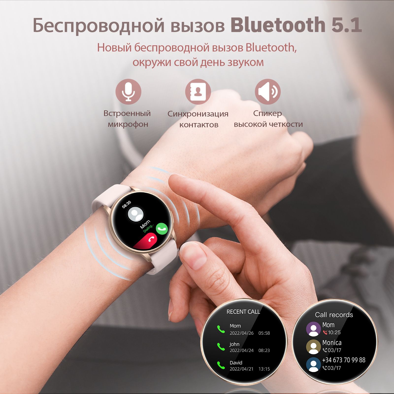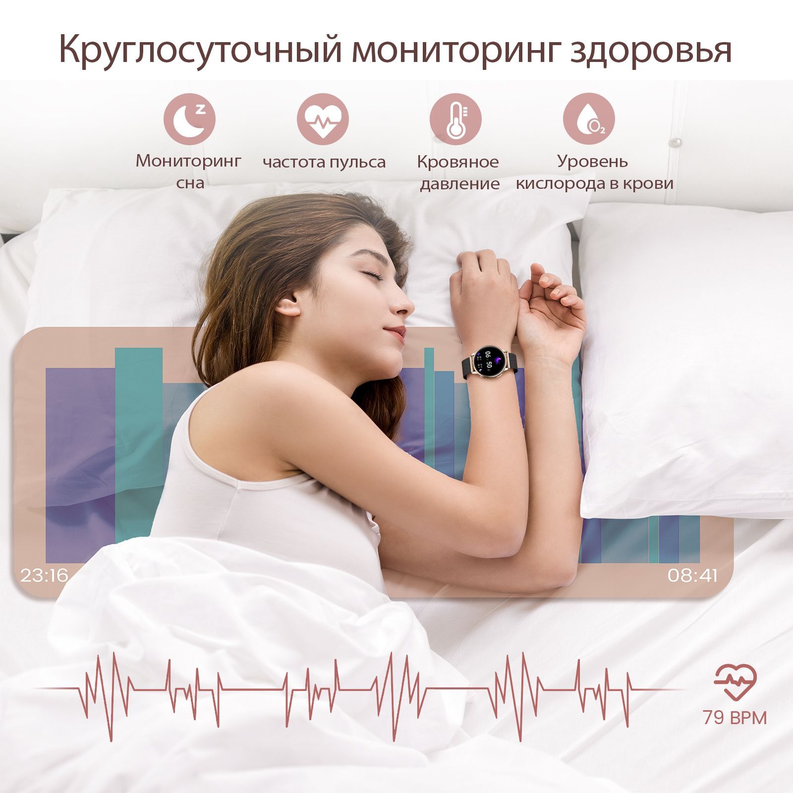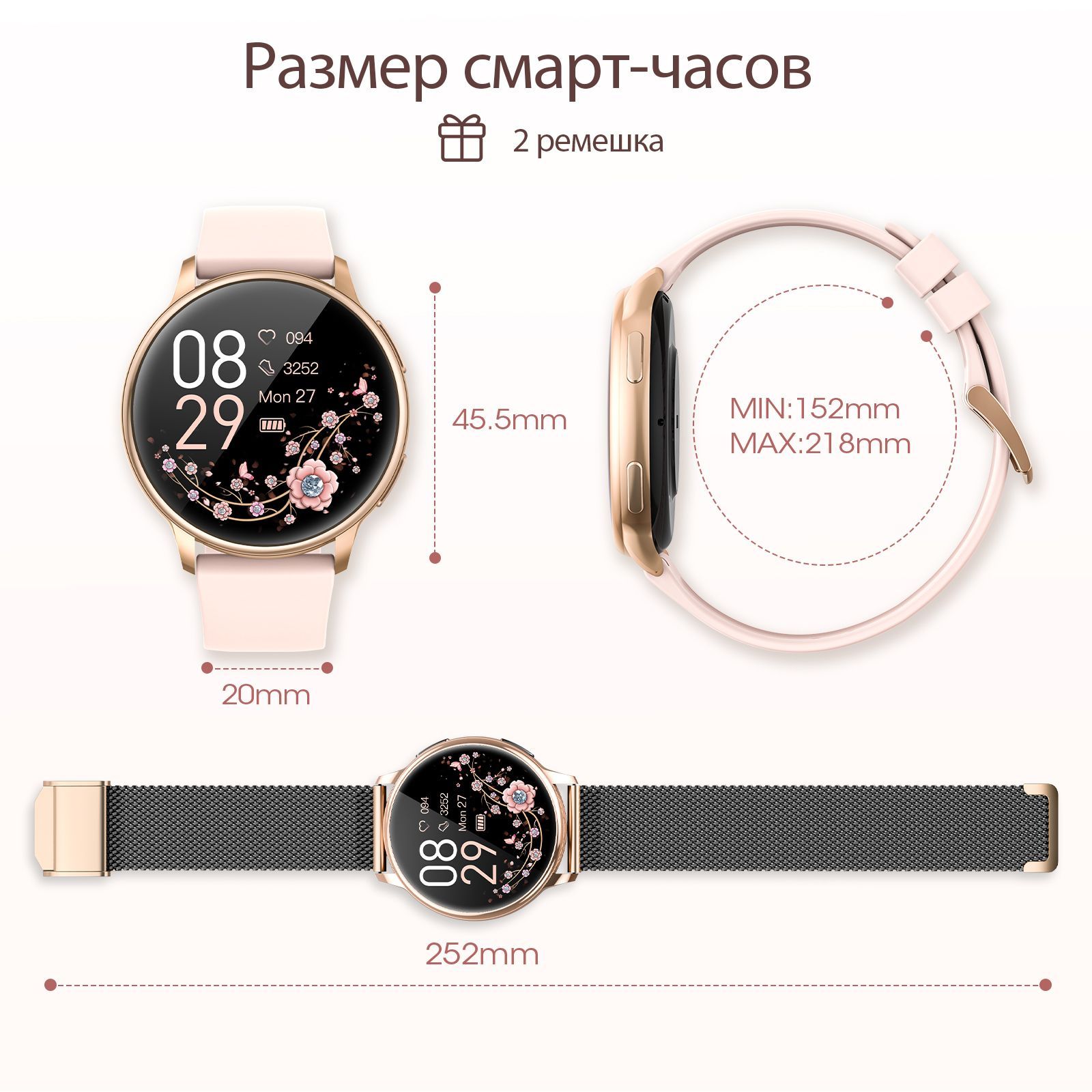DekeFit Женские Умные Часы с Bluetooth Calling, 1.32" HD Smart Watch, 2 Ремешка, Женские функции, Мониторинг Пульса, SpO2, Калорий и Сна, для Android iOS