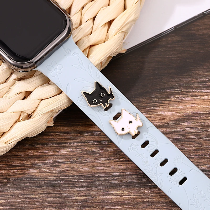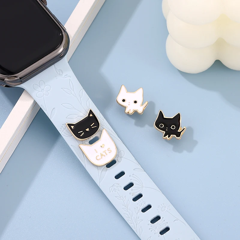 Декоративные шармы, Мультяшные милые черные белые Коты, шармы для Iwatch, силиконовый ремешок для часов, ювелирные изделия, животные, шпильки для браслета Apple