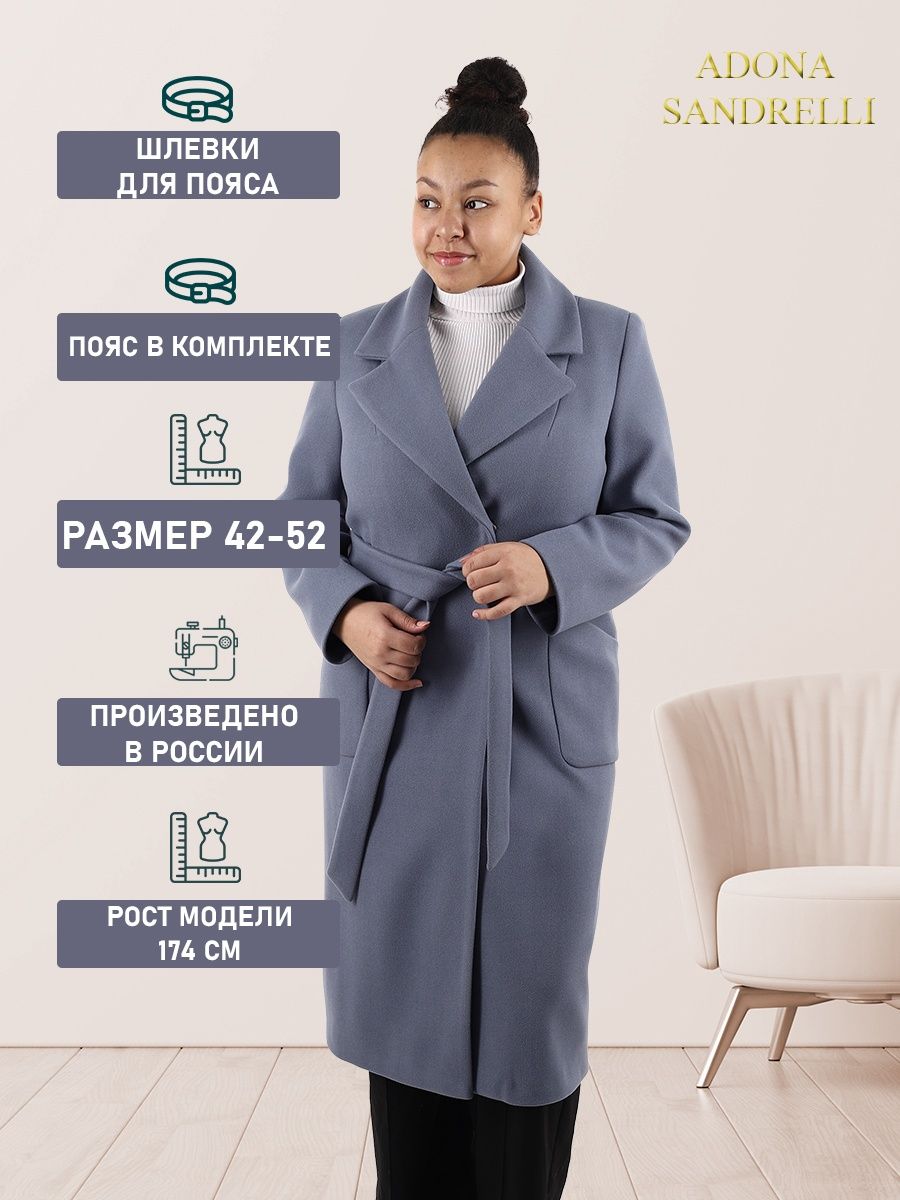 Описание: Представляем вам модное женское пальто из нашей осенне-весенней коллекции. Это современное, стильное пальто с прямым приталенным кроем, выполненное из теплого шерстяного материала. Оно идеально подойдет для прохладных осенних и весенних дней, прекрасно защищая от холода и ветра. Это пальто имеет длину 113 см для всех размеров и температурный режим от +10 до -5 градусов, что позволяет носить его в различные погодные условия. Обратите внимание, что температурный режим зависит от многих факторов (климатическая зона, ветровая нагрузка в данный момент, влажность, уровень Вашей активности, физиологические особенности организма, дополнительная одежда), так же и от индивидуальной восприимчивости к холоду и от Вашего теплообмена. Вы можете регулировать уровень теплоты и комфорта с помощью промежуточных слоев верхней одежды. Застежка на кнопках обеспечивает надежную фиксацию, а втачные рукава и закругленные накладные карманы придают пальто дополнительный комфорт и практичность. В комплекте с пальто идет пояс из основной ткани с шлевками, который позволяет подчеркнуть талию и создать эффектную силуэтную линию. Также можно носить пальто без пояса, что будет отлично сочетаться с большими размерами и подходит для беременных на ранних сроках. Это длинное, короткое пальто - идеальный выбор для тех, кто ценит комфорт, качество и стиль. Будьте уверены, что в этом пальто вы будете выглядеть непревзойденно и привлекательно, как на прогулке, так и в офисе или на вечеринке. Для фотографий позируют девушки ростом 174 см. Дорогие наши покупательницы! Мы, производитель пальто Adona Sandrelli, не торгуем со своего склада. Все наши пальто хранятся на складах WB и уже оттуда отправляются к Вам, на основании заявок от Вас. Мы не задерживаем отправку к Вам наших пальто, так как не можем на это повлиять. При отправке товара мы не путаем наши пальто с чужими товарами, так как у нас нет других товаров, кроме наших пальто. Мы не делаем пересортицу по моделям, размерам и расцветкам пальто, так как мы не формируем отправки к Вам. Мы не производим переупаковку наших пальто на складах WB в комок, замотанный скотчем, так у нас нет доступа к складам WB. Мы не удерживаем с Вас стоимость возвратов, точно так же, как и не выдаём Вам чек о покупке нашего пальто, так как это не мы продали Вам пальто Adona Sandrelli. Мы не теряем наши пояса, потому что перед отправкой в WB наша продукция проходит ОТК. Мы не пачкаем наши пальто перед отправкой. Мы не отрываем пуговицы «с мясом» от наших пальто. Мы не эксплуатируем наши пальто перед отправкой в WB. Надеемся, в случае возникновения проблем, Вы оформите пальто как брак, для изъятия из оборота, иначе оно отправиться к другому покупателю. Для нас важно, чтобы каждая наша покупательница осталась довольна покупкой и собой. Со склада производителя Adona Sandrelli, пальто отправляются в полной комплектации и в идеальном виде - отпаренные и упакованные в запаянные полиэтиленовые чехлы, с индивидуальной вешалкой, в состоянии «получила, надела, ушла с улыбкой».
