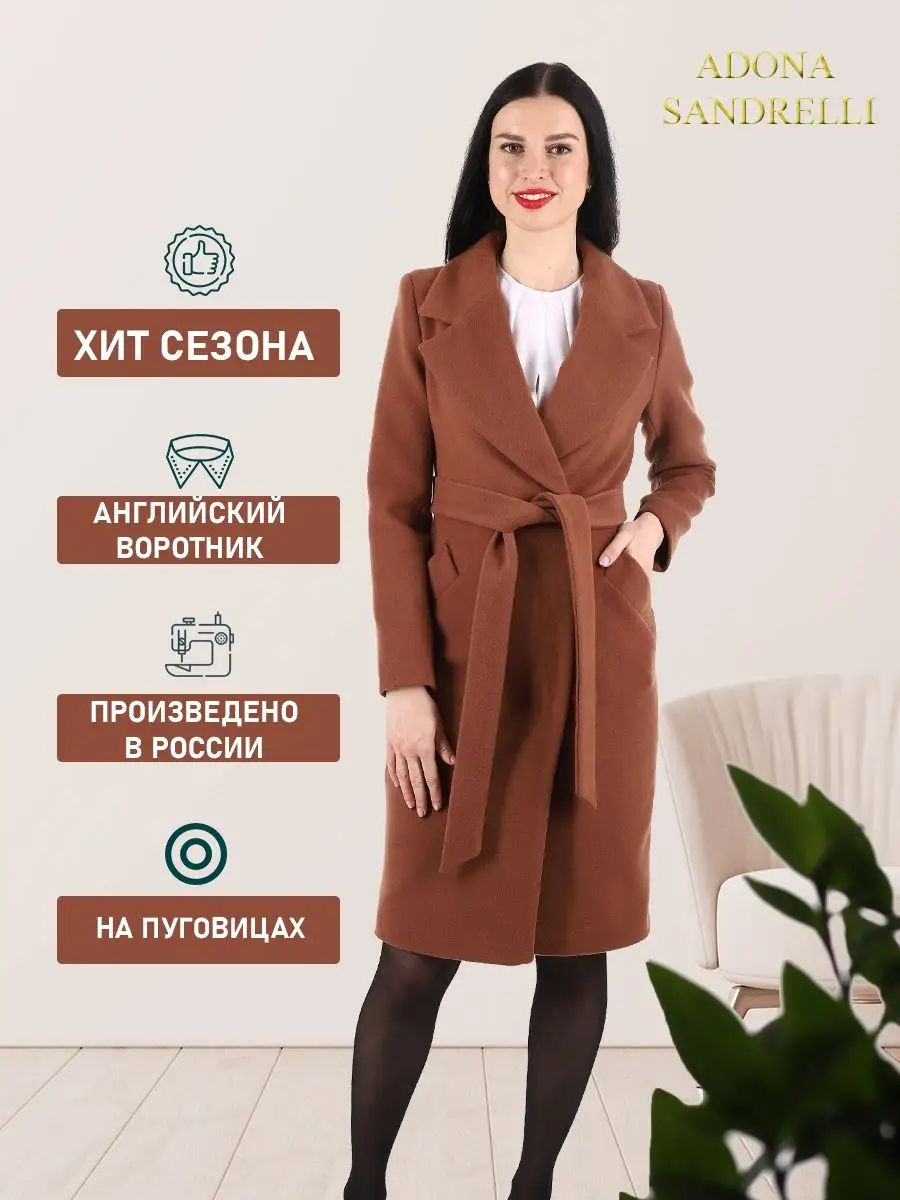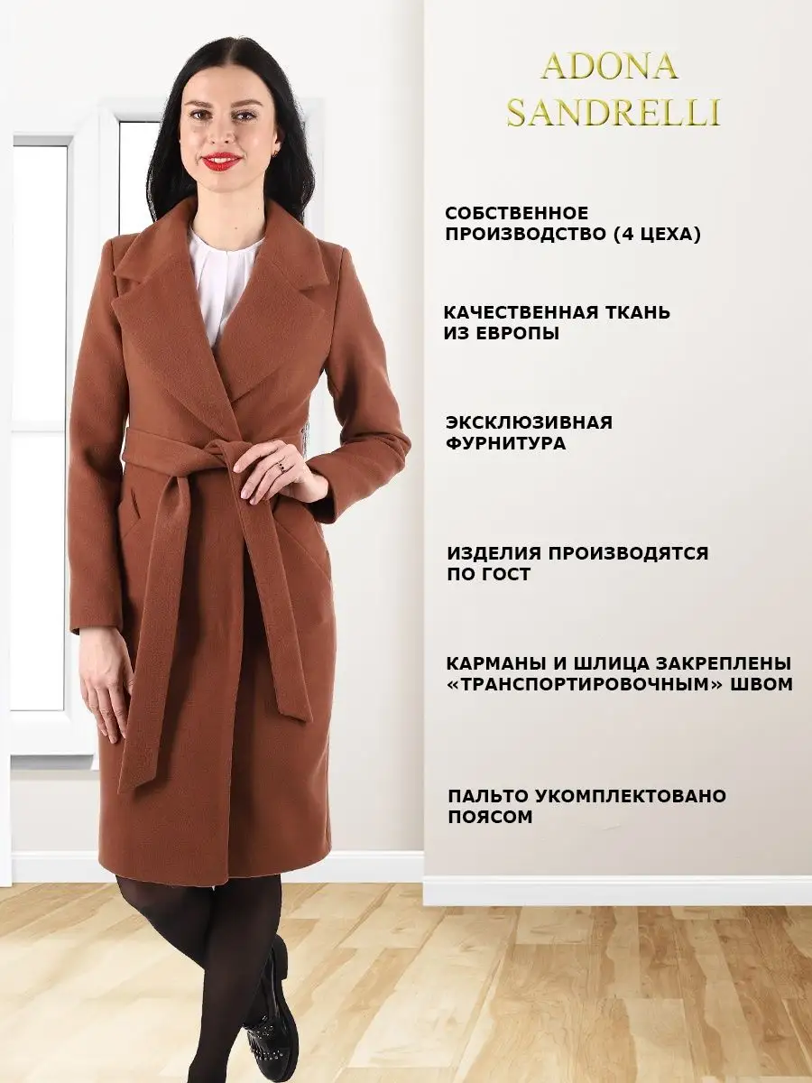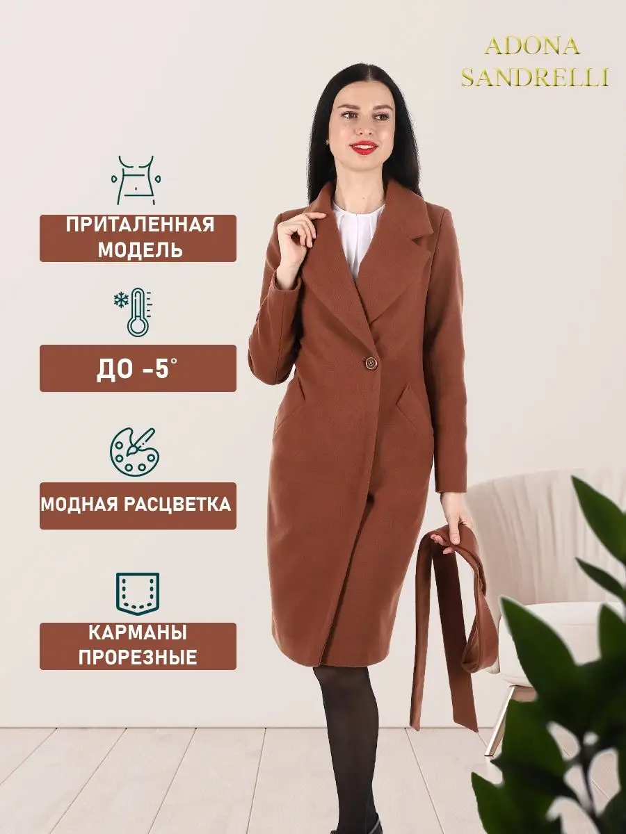 Описание: Представляем вам классическое, демисезонное, модное пальто из нашей последней осенне-весенней коллекции. Это женственное и модное демисезонное однобортное пальто приталенного силуэта без утеплителя и длиной по спинке в 103 см. во всех размерах (+ - 3%). Рекомендуется носить в температурном режиме от +10 до -5 градусов, но это зависит от множества факторов, таких как климатическая зона, уровень активности и физиологические особенности организма. Особенностью этой модели является шерстяная ткань: мягкая, бархатистая и дышащая. При этом втачной рукав создает четкий очертания фигуры и отложной воротник придает дополнительный комфорт. Есть также удобные прорезные карманы. Пальто застегивается на пуговицы в тон основного цвета и потайную застежку, для надежной защиты от холода. В комплекте есть пояс из основной ткани для дополнительной поддержки силуэта. Данная модель пальто специально пошита без шлевок (петелек для пояса), так как данную модель пальто Вы можете носить как с поясом, так и без пояса. Смотря какое у Вас настроение)) Это универсальное и функциональное пальто подходит как для прогулок, так и для офиса или вечеринок. Лаконичный дизайн пальто визуально стройнит и придает шарм. Для тех, кто не любит стандартный размер, доступны большие размеры, а также модель для беременных на ранних сроках. Это демисезонное пальто является непревзойденно привлекательным и идеальным выбором для тех, кто ищет теплую и стильную верхнюю одежду. Ткань из шерсти и функциональный удобный крой также делают его идеальным выбором для осенне-зимнего сезона. Во избежание споров (пальто маломерит, или большемерит) предлагаем всем ознакомиться с нижеприведенной таблицей по размерной сетке (ОГ-ОТ-ОБ): 42-ой размер: ОГ82-86, ОТ62-66, ОБ90-94; 44-ый размер: ОГ86-90, ОТ66-70, ОБ94-98; 46-ой размер: ОГ90-94, ОТ70-74, ОБ98-102; 48-ой размер: ОГ94-98, ОТ74-78, ОБ102-106; 50-ый размер: ОГ98-102, ОТ78-82, ОБ106-110; 52-ой размер: ОГ102-106, ОТ82-86, ОБ110-114; Отличное решение для девушек, желающих выглядеть модно и стильно, не теряя при этом комфорт и тепло. Женское пальто является не только практичным элементом гардероба, но и отличным способом выглядеть стильно и элегантно в любое время года. На фотографиях и видео позируют девушки ростом 170-174 см. Зная свой рост, Вы можете спроектировать длину пальто на себя. Чтобы поддерживать новое состояние пальто, рекомендуется в конце каждого сезона пользоваться услугами химчистки. Дорогие наши покупательницы! Мы, производитель пальто Adona Sandrelli, не торгуем со своего склада. Все наши пальто хранятся на складах WB и уже оттуда отправляются к Вам, на основании заявок от Вас. Мы не задерживаем отправку к Вам наших замечательных пальто, так как не можем на это повлиять. При отправке к Вам наших пальто мы не путаем наши стильные пальто с чужими товарами, так как у нас просто нет других товаров, кроме наших классических пальто. Мы не делаем пересортицу по моделям, размерам и расцветкам пальто, так как мы не формируем отправки к Вам. Мы не производим переупаковку наших пальто на складах WB в комок, замотанный скотчем, так у нас нет доступа к складам WB. Мы не удерживаем с Вас стоимость возвратов, точно так же, как и не выдаём Вам чек о покупке нашего пальто, так как это не мы продали Вам пальто Adona Sandrelli. Мы не теряем наши пояса, потому что перед отправкой в WB наша продукция проходит ОТК. Мы не пачкае