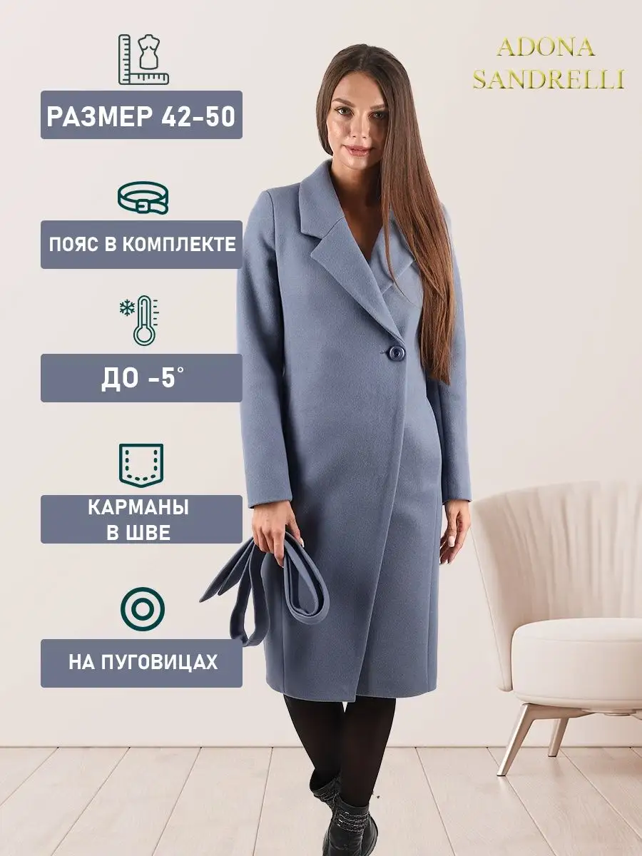 Описание: Женственное однобортное пальто облегающего покроя с прорезными карманами в швах и английским отложным воротником. Длина пальто по спинке, для всех размеров 110 см. (+ - 3%). Температурный режим от +10 до -5 градусов. Особенностью модели является дышащий материал. Модель пальто маломерит. Рост девушек моделей 174-179 см. Дорогие наши покупательницы! Мы, производитель пальто Adona Sandrelli, не торгуем со своего склада. Все наши пальто хранятся на складах WB и уже оттуда отправляются к Вам, на основании заявок от Вас. Мы не задерживаем отправку к Вам наших пальто, так как не можем на это повлиять. При отправке товара мы не путаем наши пальто с чужими товарами, так как у нас нет других товаров, кроме наших пальто. Мы не делаем пересортицу по моделям, размерам и расцветкам пальто, так как мы не формируем отправки к Вам. Мы не производим переупаковку наших пальто на складах WB в комок, замотанный скотчем, так у нас нет доступа к складам WB. Мы не удерживаем с Вас стоимость возвратов, точно так же, как и не выдаём Вам чек о покупке нашего пальто, так как это не мы продали Вам пальто Adona Sandrelli. Мы не теряем наши пояса, потому что перед отправкой в WB наша продукция проходит ОТК. Мы не пачкаем наши пальто перед отправкой. Мы не отрываем пуговицы «с мясом» от наших пальто. Мы не эксплуатируем наши пальто перед отправкой в WB. Надеемся, в случае возникновения проблем, Вы оформите пальто как брак, для изъятия из оборота, иначе оно отправиться к другому покупателю. Для нас важно, чтобы каждая наша покупательница осталась довольна покупкой и собой. Со склада производителя Adona Sandrelli, пальто отправляются в полной комплектации и в идеальном виде - отпаренные и упакованные в запаянные полиэтиленовые чехлы, с индивидуальной вешалкой, в состоянии «получила, надела, ушла с улыбкой».