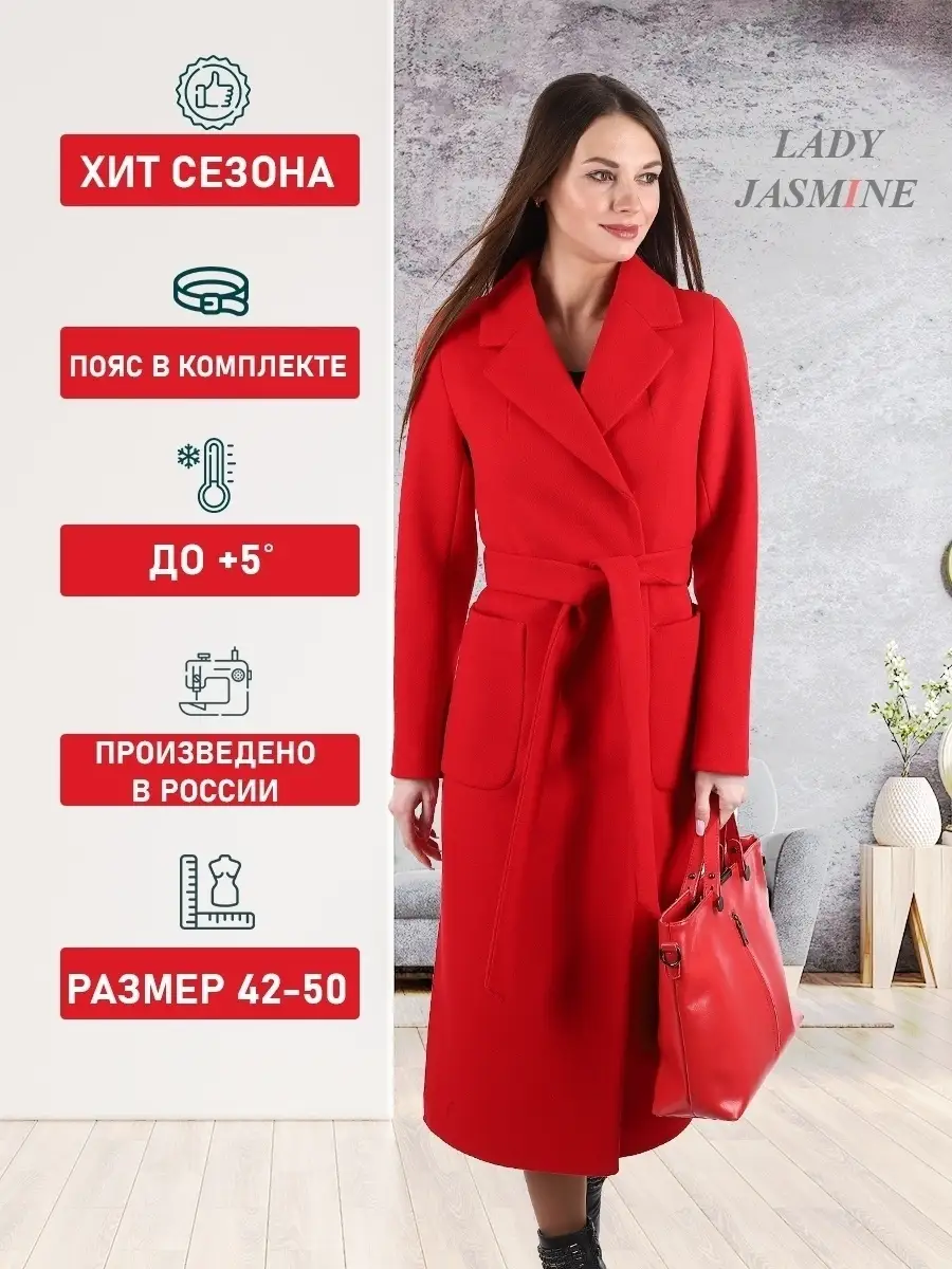 Описание: Представляем вам классическое, демисезонное, модное пальто из нашей последней осенне-весенней коллекции. Женское прямое пальто - необходимая вещь в демисезонной коллекции. Оно является универсальным и замечательным выбором для осенне-весеннего периода. Это модное и современное пальто очаровывает своим элегантным дизайном. Материал, из которого сделано пальто, это прочный и теплый текстиль, который идеально подходит для теплых дней весны, осени и зимы, поэтому пальто обеспечивает тепло и удобство в носке при температурном режиме от +10 до -5 градусов. Обратите внимание, что температурный режим зависит от многих факторов (климатическая зона, ветровая нагрузка в данный момент, влажность, уровень Вашей активности, физиологические особенности организма, дополнительная одежда), так же и от индивидуальной восприимчивости к холоду и от Вашего теплообмена. Вы можете регулировать уровень теплоты и комфорта с помощью промежуточных слоев верхней одежды. Прекрасный английский воротник и втачные рукава придают возможность использования этого пальто в качестве идеальной верхней одежды. Кроме того, это пальто прекрасно сочетается с различными видами верхней одежды и создает чувство комфорта и уверенности в себе. Дополнительное преимущество пальто заключается в функциональности данной модели пальто. Пальто длиной 121 см. по спинке, для всех размеров (+ - 3%), предоставляет комфорт для девушек любого роста. Кнопки и супатная застёжка облегчают быстрое застегивание пальто. Для добавления стиля и комфорта пальто дополнено поясом в тон пальто. Кроме того, для удобства ходьбы предусмотрены боковые швы с разрезами. Во избежание споров (пальто маломерит, или большемерит) предлагаем всем ознакомиться с нижеприведенной таблицей по размерной сетке (ОГ-ОТ-ОБ): 42-ой размер: ОГ82-86, ОТ62-66, ОБ90-94; 44-ый размер: ОГ86-90, ОТ66-70, ОБ94-98; 46-ой размер: ОГ90-94, ОТ70-74, ОБ98-102; 48-ой размер: ОГ94-98, ОТ74-78, ОБ102-106; 50-ый размер: ОГ98-102, ОТ78-82, ОБ106-110; Это классическое пальто удачно сочетается с различными образами, идеально подходит как для молодежных, так и для более зрелых женщин, а также для беременных на ранних сроках. Будьте уверены, что в этом пальто вы будете выглядеть непревзойденно и привлекательно, как на прогулке, так и в офисе или на вечеринке. Независимо от вашего стиля, это пальто будет актуальным, практичным и привлекательным дополнением к вашему гардеробу! На фотографиях и видео позируют девушки ростом 174 см. Дорогие наши покупательницы! Мы, производитель пальто Lady Jasmine, не торгуем со своего склада. Все наши пальто хранятся на складах WB и уже оттуда отправляются к Вам, на основании заявок от Вас. Мы не задерживаем отправку к Вам наших замечательных пальто, так как не можем на это повлиять. При отправке к Вам наших пальто мы не путаем наши стильные пальто с чужими товарами, так как у нас просто нет других товаров, кроме наших классических пальто. Мы не делаем пересортицу по моделям, размерам и расцветкам пальто, так как мы не формируем отправки к Вам. Мы не производим переупаковку наших пальто на складах WB в комок, замотанный скотчем, так у нас нет доступа к складам WB. Мы не удерживаем с Вас стоимость возвратов, точно так же, как и не выдаём Вам чек о покупке нашего пальто, так как это не мы продали Вам пальто Lady Jasmine. Мы не теряем наши пояса, потому что перед отправкой в WB н