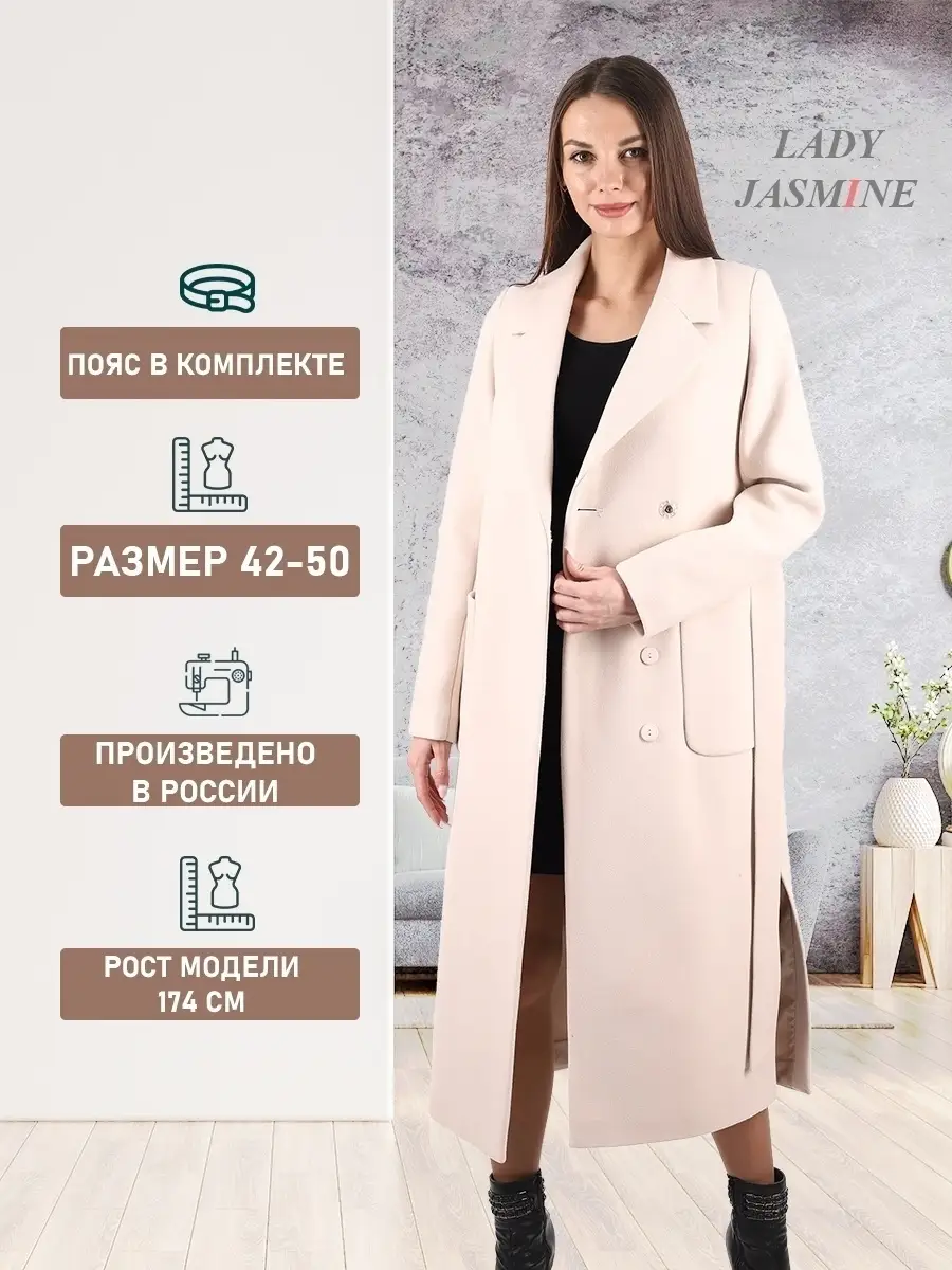 Описание: Представляем вам классическое, демисезонное, модное пальто из нашей последней осенне-весенней коллекции. Женское прямое пальто - необходимая вещь в демисезонной коллекции. Оно является универсальным и замечательным выбором для осенне-весеннего периода. Это модное и современное пальто очаровывает своим элегантным дизайном. Материал, из которого сделано пальто, это прочный и теплый текстиль, который идеально подходит для теплых дней весны, осени и зимы, поэтому пальто обеспечивает тепло и удобство в носке при температурном режиме от +10 до -5 градусов. Обратите внимание, что температурный режим зависит от многих факторов (климатическая зона, ветровая нагрузка в данный момент, влажность, уровень Вашей активности, физиологические особенности организма, дополнительная одежда), так же и от индивидуальной восприимчивости к холоду и от Вашего теплообмена. Вы можете регулировать уровень теплоты и комфорта с помощью промежуточных слоев верхней одежды. Прекрасный английский воротник и втачные рукава придают возможность использования этого пальто в качестве идеальной верхней одежды. Кроме того, это пальто прекрасно сочетается с различными видами верхней одежды и создает чувство комфорта и уверенности в себе. Дополнительное преимущество пальто заключается в функциональности данной модели пальто. Пальто длиной 121 см. по спинке, для всех размеров (+ - 3%), предоставляет комфорт для девушек любого роста. Кнопки и супатная застёжка облегчают быстрое застегивание пальто. Для добавления стиля и комфорта пальто дополнено поясом в тон пальто. Кроме того, для удобства ходьбы предусмотрены боковые швы с разрезами. Во избежание споров (пальто маломерит, или большемерит) предлагаем всем ознакомиться с нижеприведенной таблицей по размерной сетке (ОГ-ОТ-ОБ): 42-ой размер: ОГ82-86, ОТ62-66, ОБ90-94; 44-ый размер: ОГ86-90, ОТ66-70, ОБ94-98; 46-ой размер: ОГ90-94, ОТ70-74, ОБ98-102; 48-ой размер: ОГ94-98, ОТ74-78, ОБ102-106; 50-ый размер: ОГ98-102, ОТ78-82, ОБ106-110; Это классическое пальто удачно сочетается с различными образами, идеально подходит как для молодежных, так и для более зрелых женщин, а также для беременных на ранних сроках. Будьте уверены, что в этом пальто вы будете выглядеть непревзойденно и привлекательно, как на прогулке, так и в офисе или на вечеринке. Независимо от вашего стиля, это пальто будет актуальным, практичным и привлекательным дополнением к вашему гардеробу! На фотографиях и видео позируют девушки ростом 174 см. Дорогие наши покупательницы! Мы, производитель пальто Lady Jasmine, не торгуем со своего склада. Все наши пальто хранятся на складах WB и уже оттуда отправляются к Вам, на основании заявок от Вас. Мы не задерживаем отправку к Вам наших замечательных пальто, так как не можем на это повлиять. При отправке к Вам наших пальто мы не путаем наши стильные пальто с чужими товарами, так как у нас просто нет других товаров, кроме наших классических пальто. Мы не делаем пересортицу по моделям, размерам и расцветкам пальто, так как мы не формируем отправки к Вам. Мы не производим переупаковку наших пальто на складах WB в комок, замотанный скотчем, так у нас нет доступа к складам WB. Мы не удерживаем с Вас стоимость возвратов, точно так же, как и не выдаём Вам чек о покупке нашего пальто, так как это не мы продали Вам пальто Lady Jasmine. Мы не теряем наши пояса, потому что перед отправкой в WB н