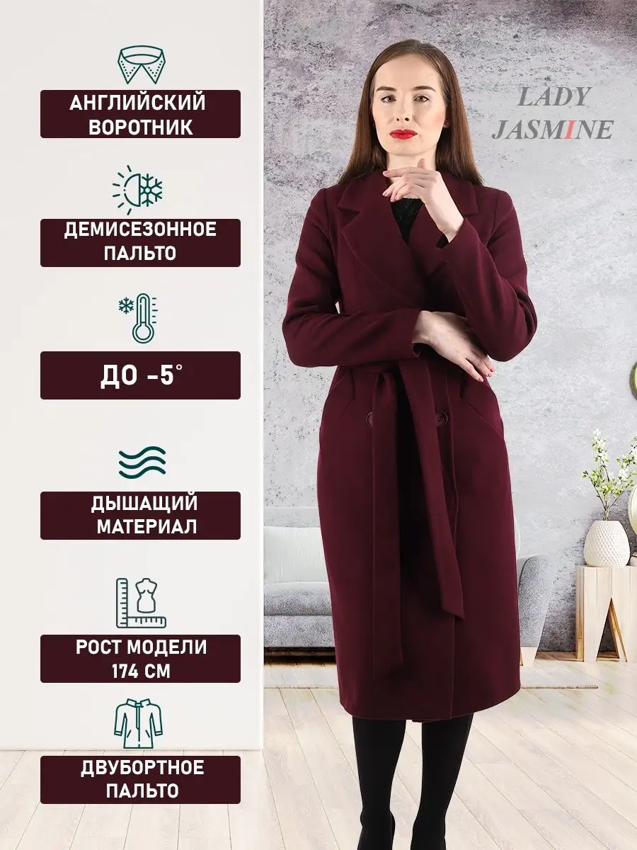 Описание: Двубортное пальто прилегающего силуэта. Длина пальто по спинке фиксированная для всех размеров - 110 см. (+ -3%). Рекомендованный температурный режим от +10 до -5 градусов. Температурный режим зависит от многих факторов (климатическая зона, уровень активности, физиологические особенности организма) и носит рекомендательный характер. Особенностью модели является шерстяная ткань мягкая, бархатистая и дышащая. Модель имеет прорезные карманы с листочкой, застежку на пуговицы. Пояс из основной ткани в комплекте. Шлица для удобства ходьбы. Лаконичная модель выгодно подчеркнёт фигуру и с легкостью впишется в любой гардероб. Рост девушки модели 174 см. Дорогие наши покупательницы! Мы, производитель пальто Lady Jasmine, не торгуем со своего склада. Все наши пальто хранятся на складах WB и уже оттуда отправляются к Вам, на основании заявок от Вас. Мы не задерживаем отправку к Вам наших пальто, так как не можем на это повлиять. При отправке товара мы не путаем наши пальто с чужими товарами, так как у нас нет других товаров, кроме наших пальто. Мы не делаем пересортицу по моделям, размерам и расцветкам пальто, так как мы не формируем отправки к Вам. Мы не производим переупаковку наших пальто на складах WB в комок, замотанный скотчем, так у нас нет доступа к складам WB. Мы не удерживаем с Вас стоимость возвратов, точно так же, как и не выдаём Вам чек о покупке нашего пальто, так как это не мы продали Вам пальто Lady Jasmine. Мы не теряем наши пояса, потому что перед отправкой в WB наша продукция проходит ОТК. Мы не эксплуатируем наши пальто перед отправкой в WB. Мы не отрываем пуговицы «с мясом» от наших пальто. Надеемся, в случае возникновения проблем, Вы оформите пальто как брак, для изъятия из оборота, иначе оно отправиться к другому покупателю. Для нас важно, чтобы каждая наша покупательница осталась довольна покупкой и собой. Со склада производителя Lady Jasmine, пальто отправляются в полной комплектации и в идеальном виде - отпаренные и упакованные в запаянные полиэтиленовые чехлы, с индивидуальной вешалкой, в состоянии «получила, надела, ушла с улыбкой».